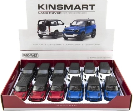 Skaists Land Rover Defender 90 auto modelis 12,5 cm izmērā ir izgatavots no metāla un plastmasas un tam ir atvilkšanas piedziņas funkcija. Ideāli piemērots kolekcionāriem un mazajiem entuziastiem.