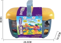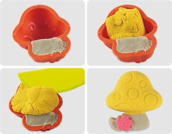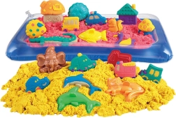 Iepakojumā atradīsiet daudzkrāsainas smiltis (4 krāsas), daudzveidīgas dzīvnieku, transportlīdzekļu un ēku formiņas, modelēšanas instrumentus un piepūšamo paplāti – viss ievietots praktiskā groziņā ar rokturi ērtai pārnēsāšanai un glabāšanai.