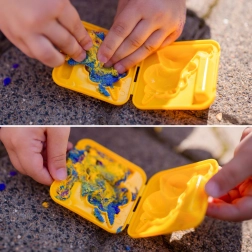 Izveidojiet mājās pasakainu valstību ar krāsainām kinētiskajām smiltīm, kuras bērni dievina. Smiltis lieliski spiežas, griežas un tur formu, tās nelīp un ir viegli sakopt. Pievienotais galdiņš/paplāte notur visu kopā, lai bērni varētu spēlēties uz galda vai ārā bez liekas nekārtības.