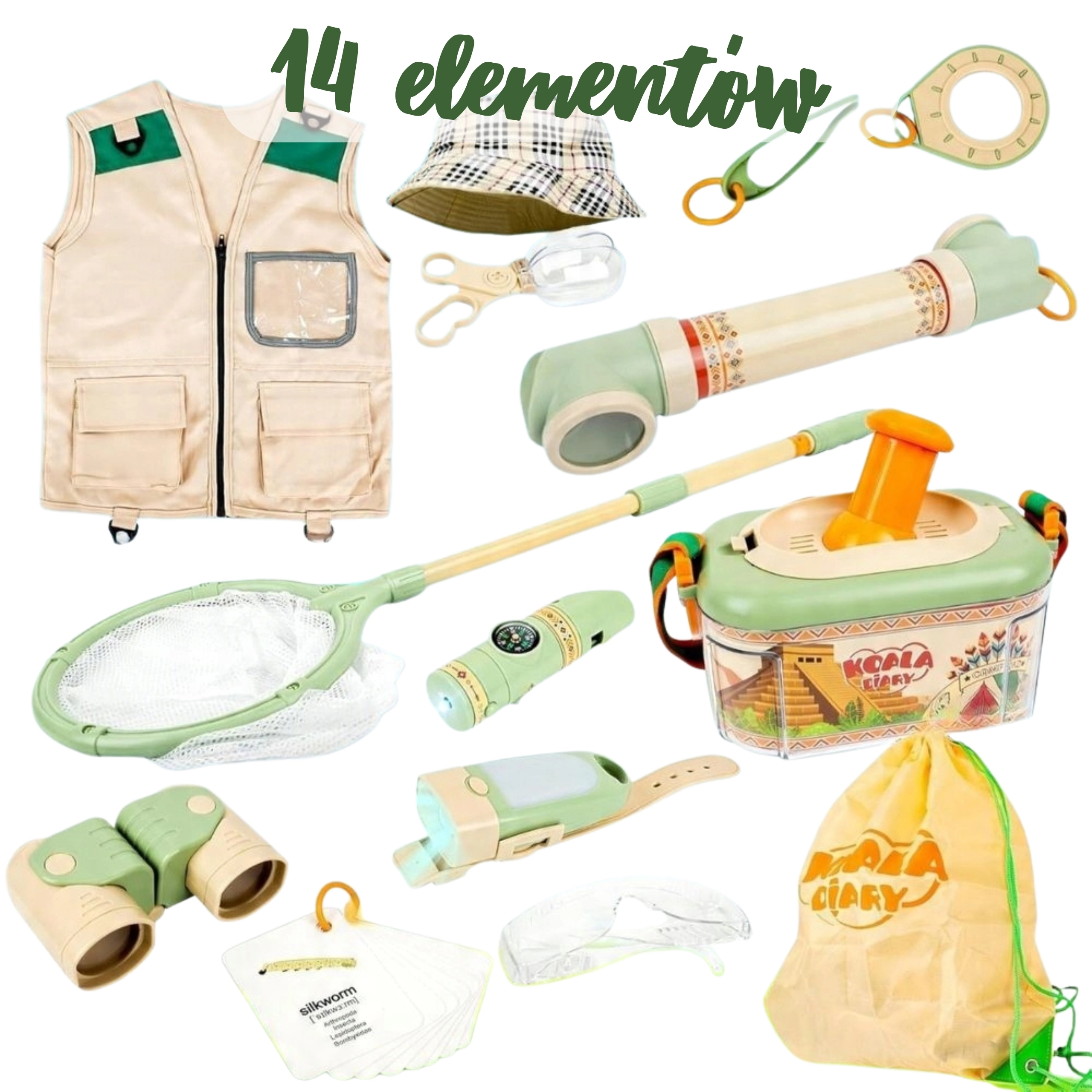Sagatavojieties neaizmirstamam piedzīvojumam ar Mazā Pētnieka komplektu no Woopie! Šis visaptverošais aprīkojuma komplekts ir lieliska dāvana visiem zinātkārajiem jaunajiem pētniekiem, kuri vēlas iepazīt dabu dārzā, mežā vai savā pagalmā.