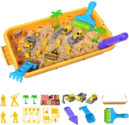 Šis radošais būvkomplekts ar kinētiskajām smiltīm sniedz realistisku izklaidi par būvniecības tēmu. Pārnēsājamā paplātes pamatne ar paaugstinātām malām notur smiltis kopā, savukārt mini ekskavatori, pašizgāzēji, veltņi, figūriņas un ceļu satiksmes zīmes palīdz bērniem veidot savu būvlaukumu. Kinētiskās smiltis nelīp pie rokām vai grīdas un ir netoksiskas.