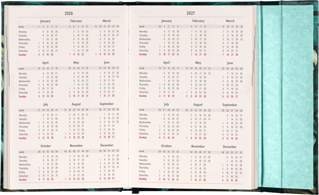 - Horizontālu nedēļas izkārtojumu divās lappusēs.