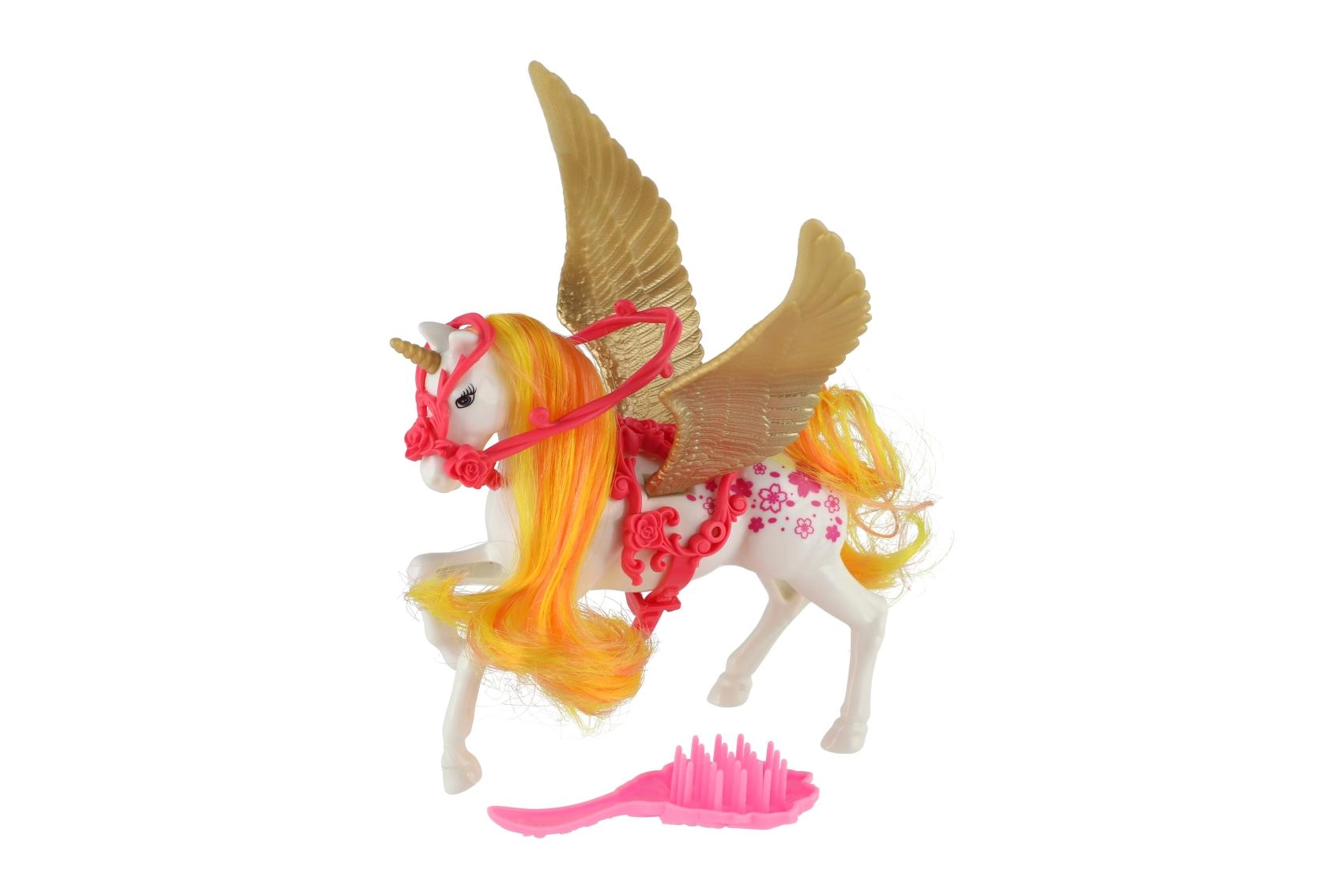 Apburošs vienradzis ar garu krēpi un spārniem iepriecinās ikvienu bērnu. Komplektā ir praktiska ķemmīte ērtai veidošanai. Pieejams 3 krāsu variantos, figūriņas izmērs 22 cm. Lieliska dāvana mazajiem burvju radību un princešu cienītājiem.