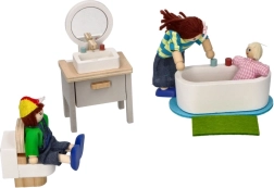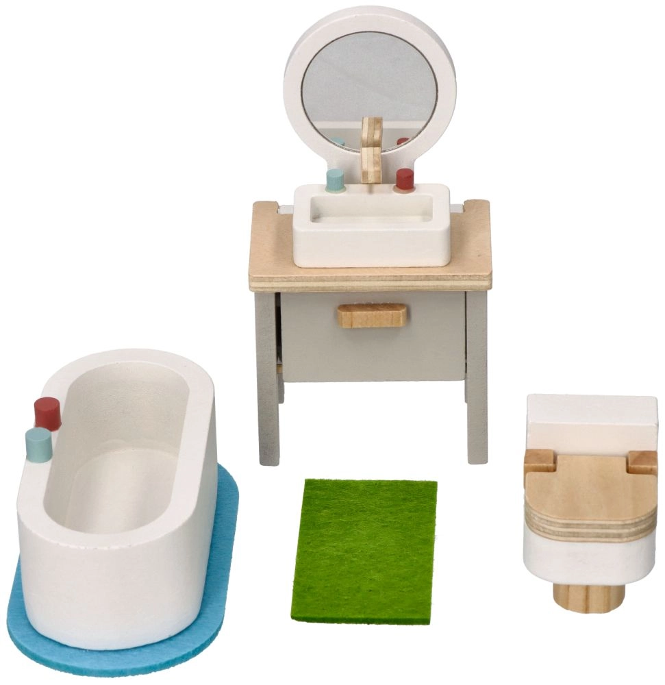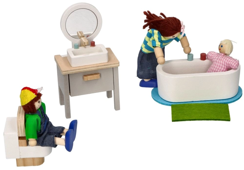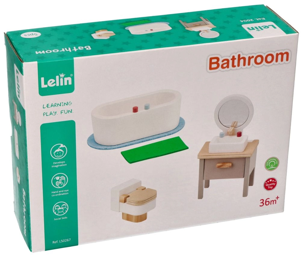 Bērnu vannas istabas komplekts leļļu mājai piedāvā elegantu izskatu un palīdz attīstīt bērnu fantāziju spēles laikā. Komplektā ietilpst: