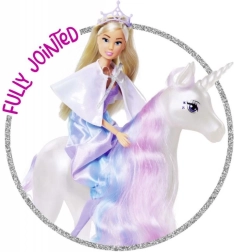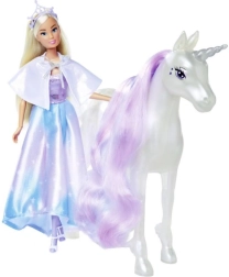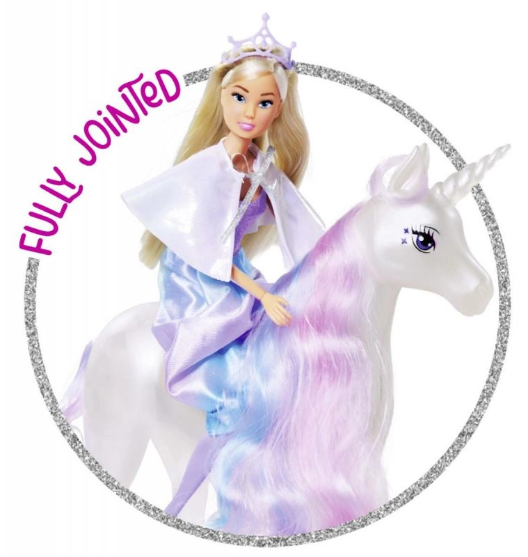 Atklājiet fantāzijas pasauli ar lelli Steffi, kura ir tērpusies maģiskā princeses kleitā, ideāli piemērotā jebkurai pasakai. Viņas uzticamais sabiedrotais, vienradzis, ne tikai izskatās iespaidīgi, pateicoties savai spīdošajai funkcijai, bet arī ļauj veidot dažādus matu sakārtojumus, pateicoties savai garajai krēpei.