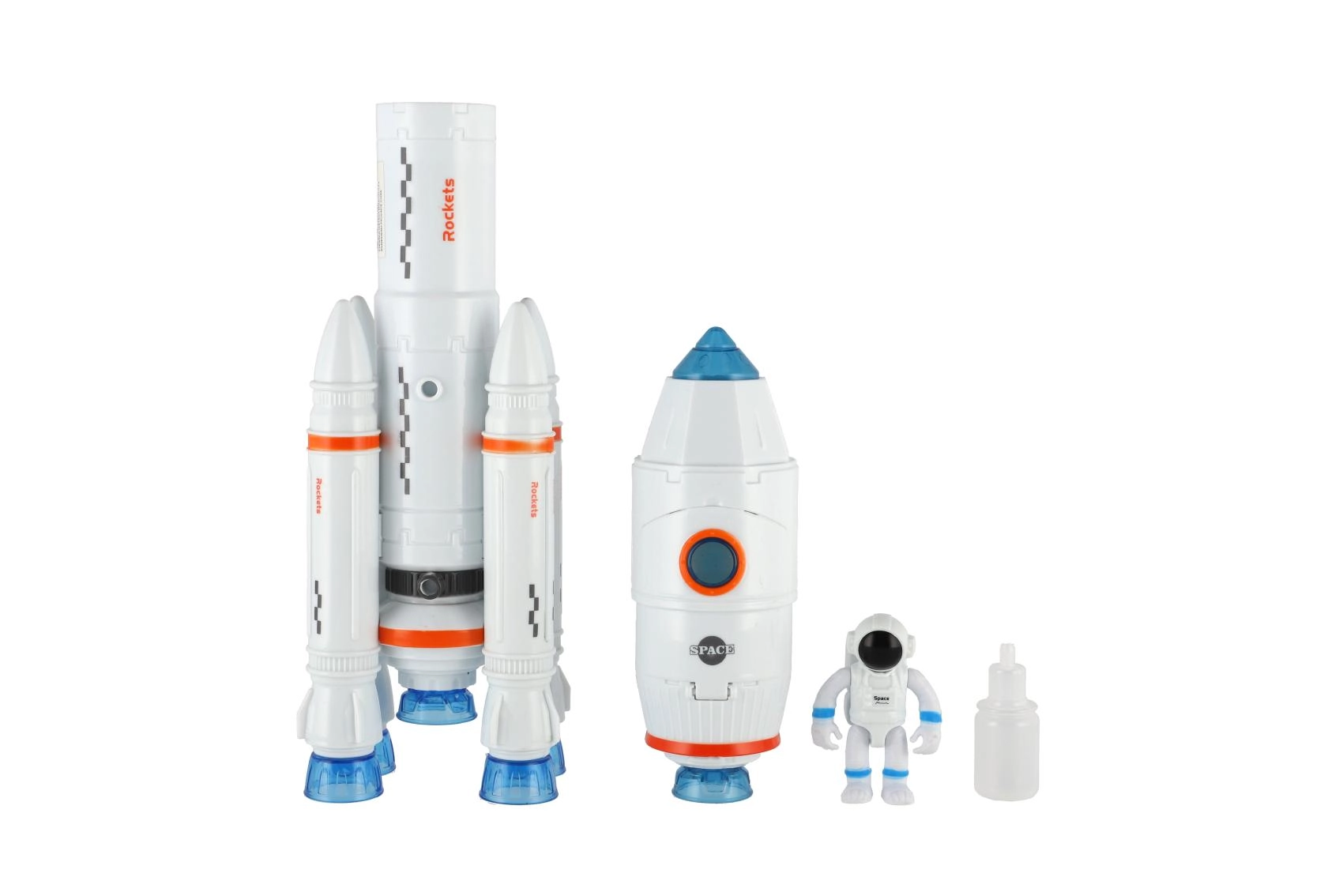 Komplektā ir mazs astronauts un uzpildes pudelīte. Bērni var veidot savus stāstus par kosmosu.