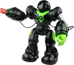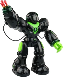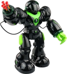 - Robots, pults, USB uzlādes kabelis, 5x šāviņi, instrukcija