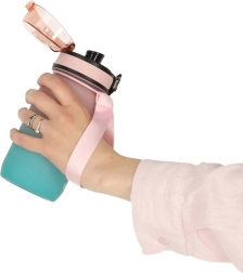 Vāciņš ar “klik” tipa aizbīdni garantē, ka ūdens neizlīs, un plata cilpa atvieglo pudeles nēsāšanu jebkur.