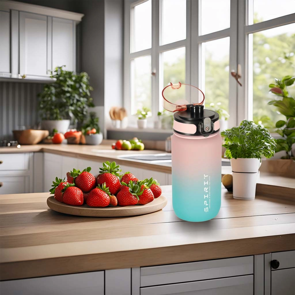 Rozā–zilā ūdens pudele ir praktisks aksesuārs tiem, kas vēlas sekot līdzi ūdens uzņemšanai visas dienas garumā. Ar attēloto skalu un infografiku varat vieglāk kontrolēt, cik daudz ūdens jau esat izdzēris un cik vēl nepieciešams papildināt. Maksimālais tilpums ir 600 ml, kas atvieglo ikdienas šķidruma uzņemšanas uzraudzību.