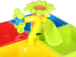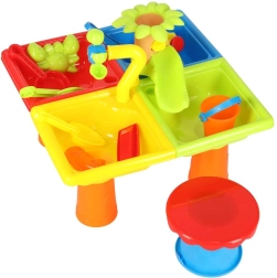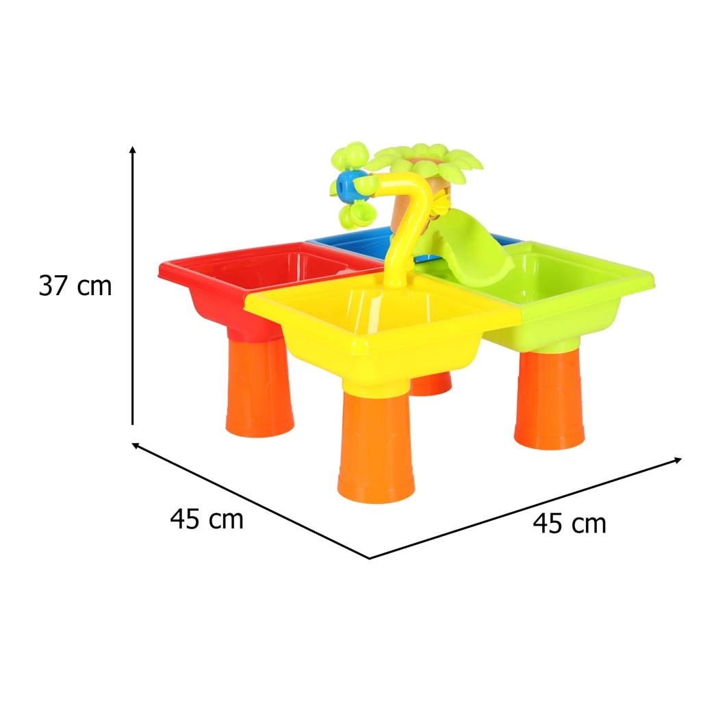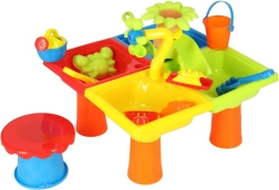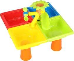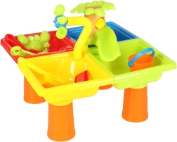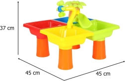 Ūdens galds un smilšu kaste vienā ir ideāli piemērota dārzam, terasei vai balkonam. Galds ar atdalītām nodalījumu daļām ļauj bērniem spēlēties gan ar ūdeni, gan ar smiltīm. Bērni var veidot savu ūdens ostu un aizdzīt garlaicību, piemēram, arī pludmalē.