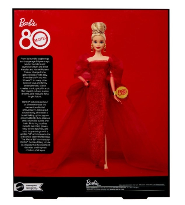 Šī kolekcionāru Barbie, radīta par godu Mattel 80. gadadienai, godina zīmola bagāto mantojumu. Elegants stils, ikoniski dizaini un svinīgais jubilejas izdevums padara šo lelli par izcilu kolekcijas pērli.