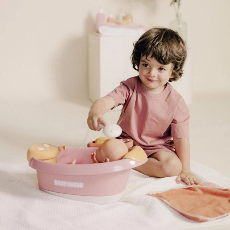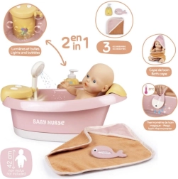 Izbaudiet reālistisku leļļu peldināšanu ar Smoby Baby Nurse vanniņu, kas aprīkota ar elektronisku dušu un burbuļu funkciju ar gaismu. Nospiediet pogu, un ūdens sāks tecēt no automātiskās dušas galvas, sniedzot izklaidi un īstas vannas sajūtu.