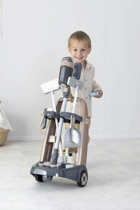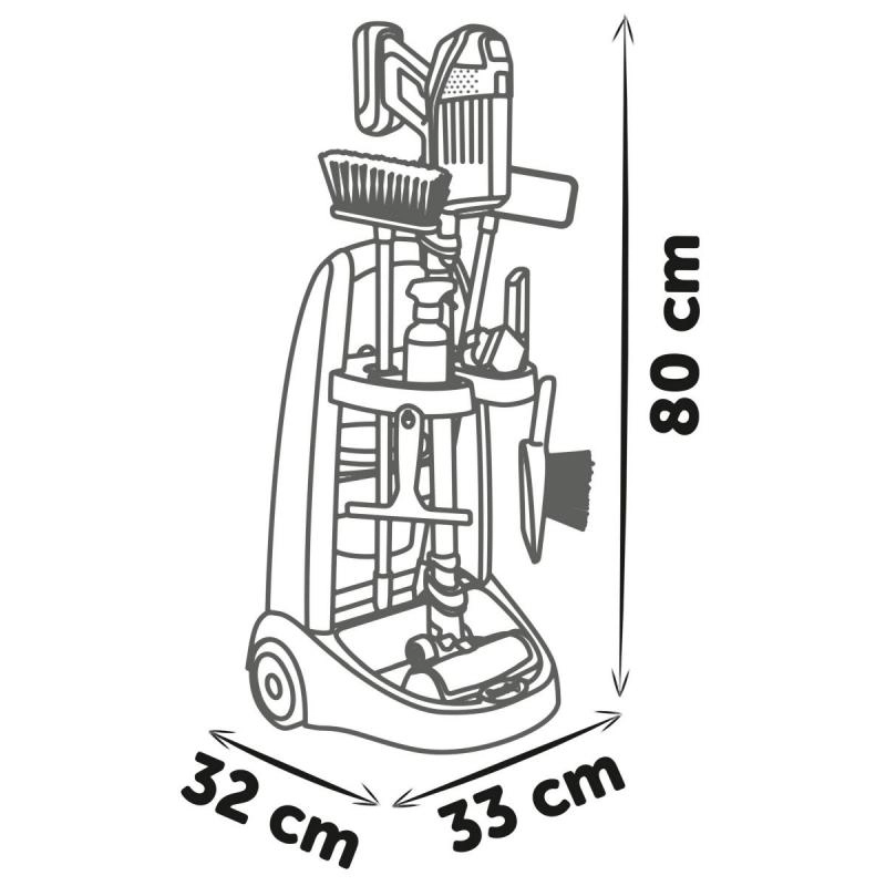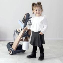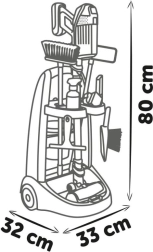Šie uzkopšanas ratiņi ir ideāli bērniem, kuri vēlas palīdzēt mājās. Piederumos ietilpst: