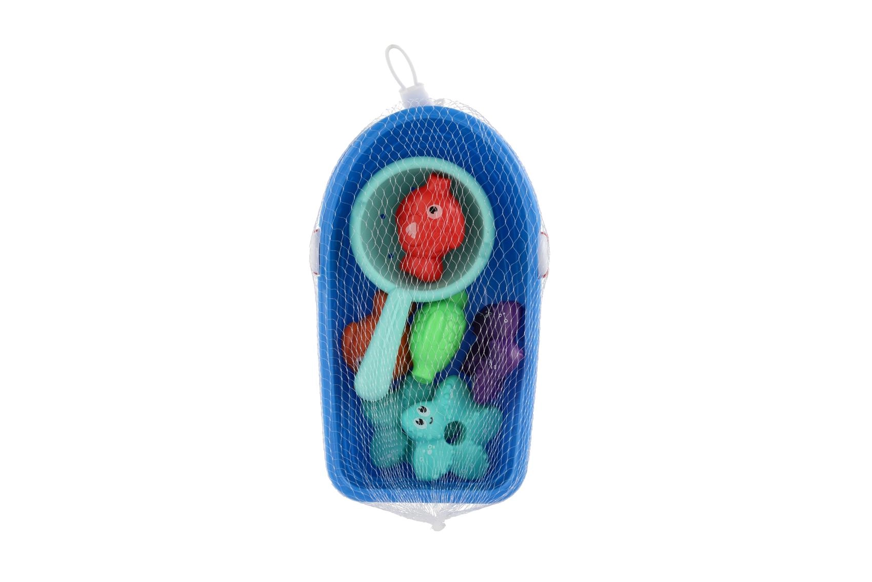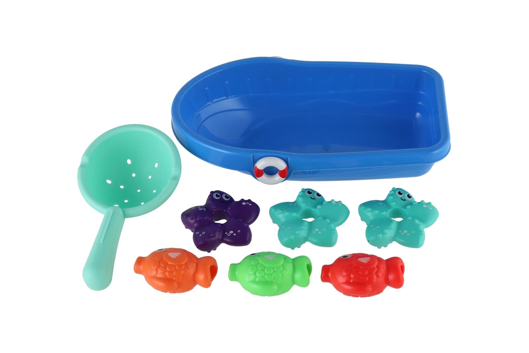 Komplektā ir vairāku mīlīgu zivtiņu un jūras zvaigžņu formas košās krāsās. Bērni tās var ķert ar sietiņu vai ļaut brīvi peldēt.