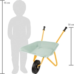 Ideāli dārza darbiem! Izturīga metāla vanna, gumijas riepas un pret-slīdes rokturi ļauj bērniem palīdzēt vecākiem dārzā. Piemērota gan dārzam, gan smilšu kastei.