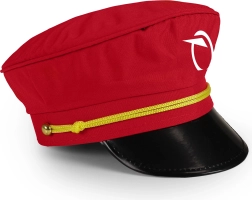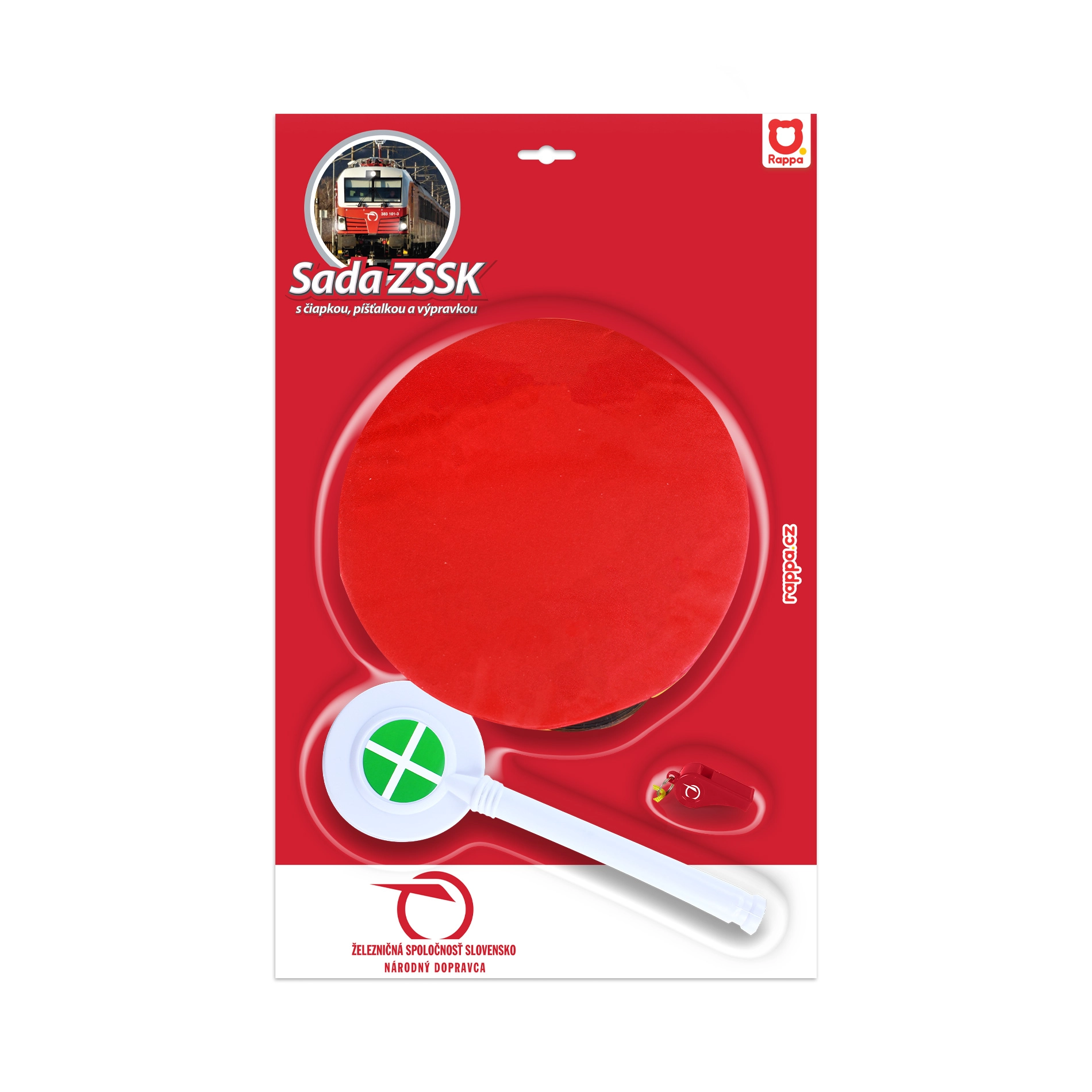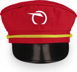 Stilīga sarkana cepure ar Slovākijas dzelzceļa uzņēmuma logotipu, melnu spīdīgu nagu un dzeltenu aukliņu. Ideāli piemērota spēlei par dispečeru.