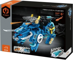 im.master hidrauliskais kaujas vērsis ir aizraujošs konstruktoru komplekts jaunajiem tehniķiem, kas sniedz reālistiskāku mehānikas pieredzi bez elektronikas. Izmantojot ūdeni, roku sūkni un caurspīdīgas šļūtenes, bērni iedarbina dažādas modeļa daļas un intuitīvi iepazīst spēka pārnesi un spiedienu šķidrumos.