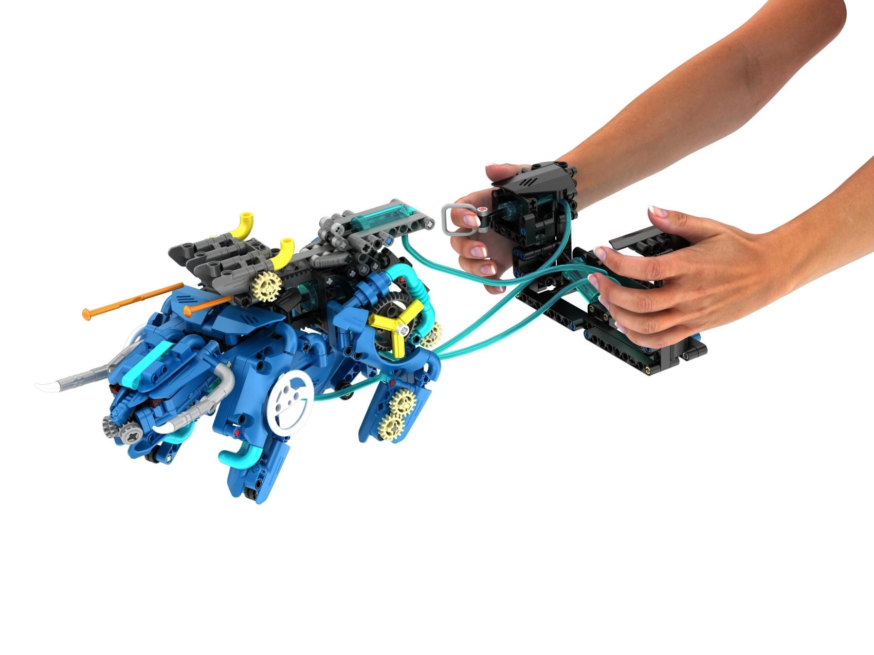 robota konstruktoru komplekts kaujas vērša formā, hidrauliskās šļūtenes, roku sūknis