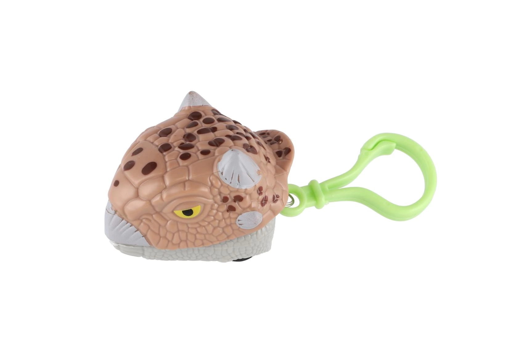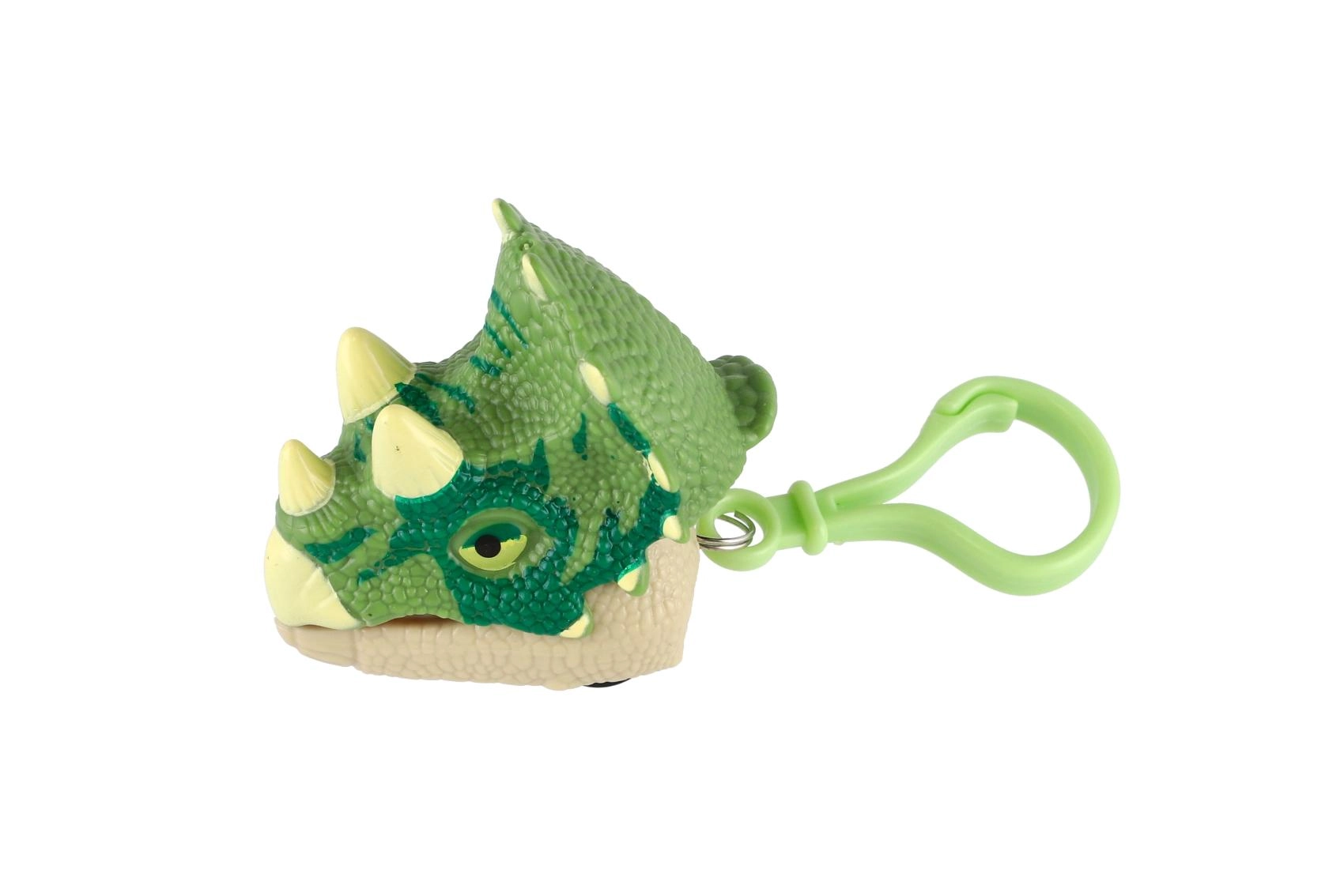 Stilīgs un izklaidējošs piekariņš dinozaura galvas formā, kas viegli “kož” un kustas pateicoties inerces mehānismam. Lielisks aksesuārs mugursomai vai atslēgām visiem dinozauru mīļotājiem.