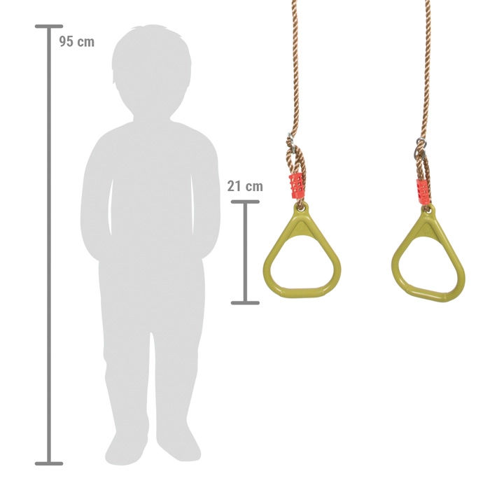 Vingrošanas un šūpošanās riņķi lieliski izklaidē bērnus visās vecuma grupās. Tie ir ideāli piemēroti mazajiem akrobātiem, lai izmēģinātu spēku, līdzsvaru un izturību gan telpās, gan ārā.