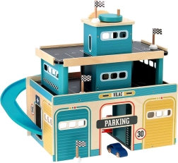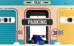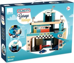 Koka garāža vintage stilā no Vilacity sērijas bērniem piedāvā bezgalīgas spēļu iespējas. Pateicoties bīdāmajām durvīm, mašīnīšu liftam un spirālveida trasei, bērni var: