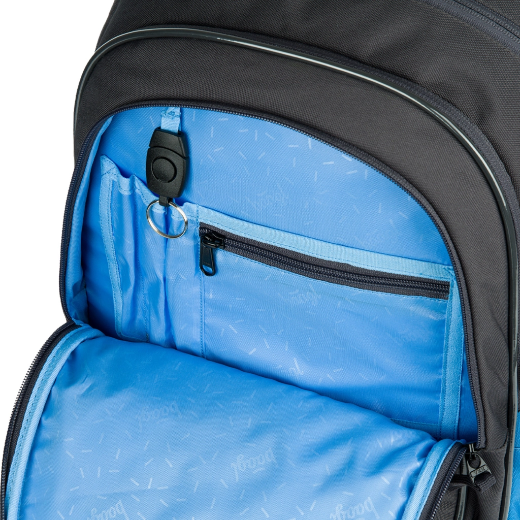 Mugursomai ir arī stilīgs piekariņš, kas iepriecinās ikvienu skolēnu.