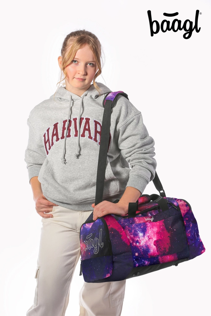 Sporta soma Galaxy no zīmola BAAGL ir ideāla izvēle vecākiem skolēniem un studentiem. Pateicoties ietilpīgajai galvenajai nodalījumam, ūdensnecaurlaidīgam materiālam un praktiskām kabatām, tā nodrošina ērtu un drošu jūsu sporta piederumu pārnēsāšanu.