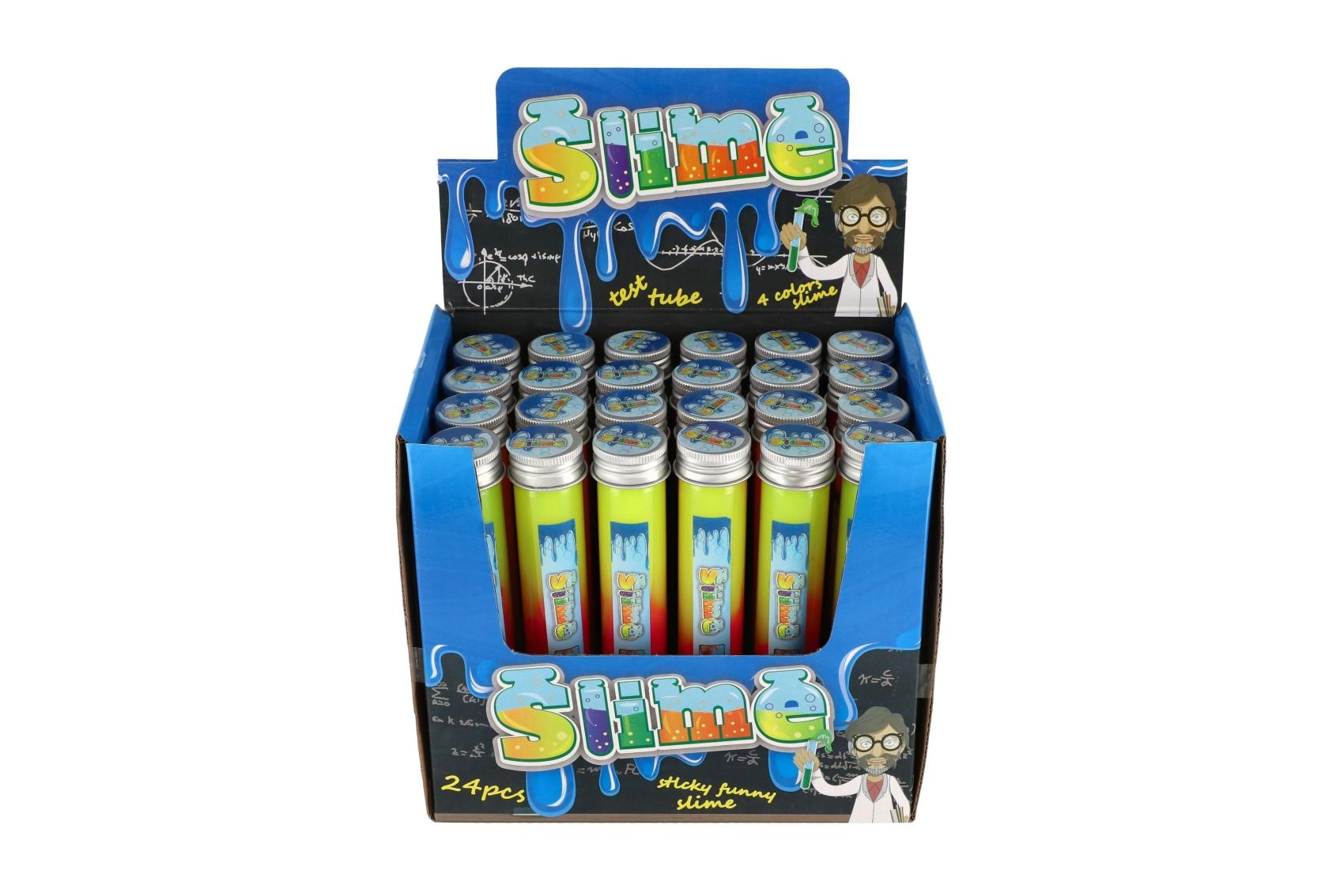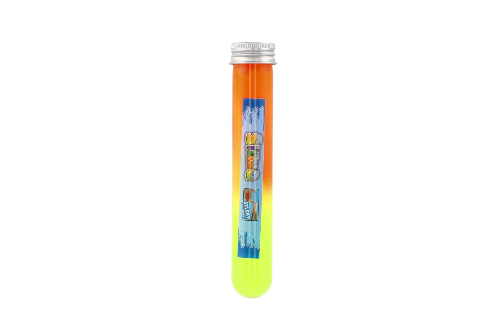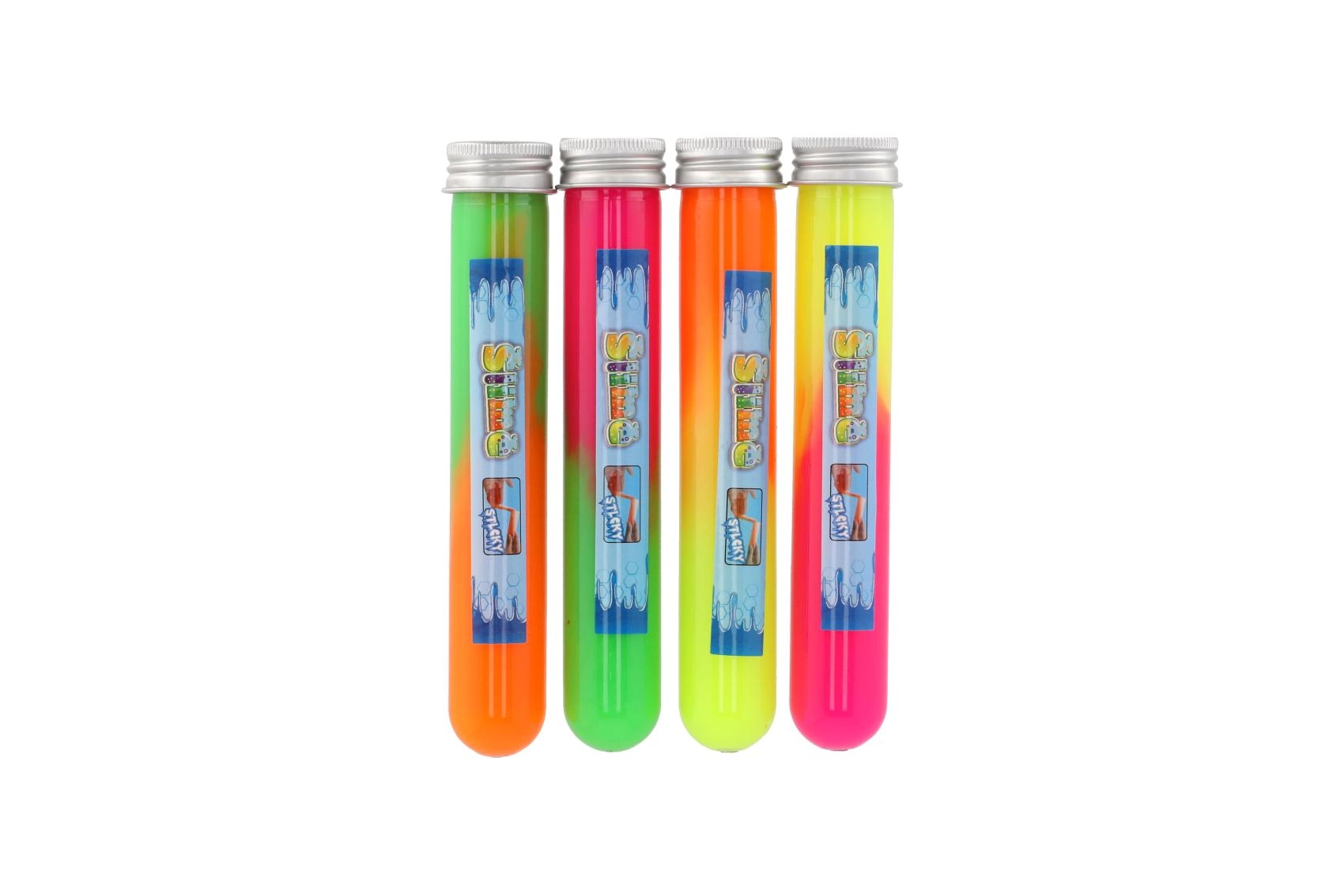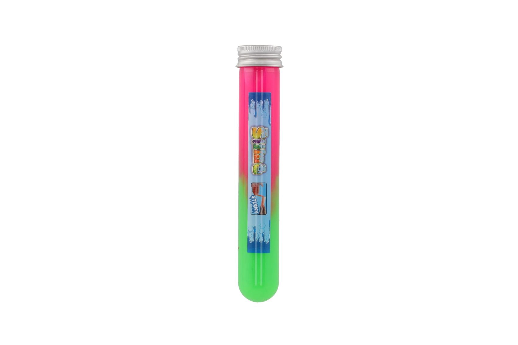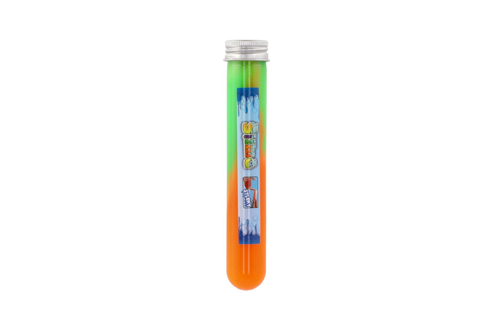 Atklājiet krāsu un tekstūru pasauli ar gļotām caurspīdīgā mēģenē. Šis jautrais materiāls ir:
