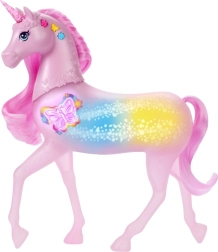 Barbie burvju vienradzis pārvērš katru spēli krāšņā izrādē, pilnā ar gaismām, skaņām un mūziku. Ar vienkāršu pieskārienu galvai tu sāksi izrādi, bet ar trim krāsu pogām varēsi izveidot līdz pat 20 unikālām kombinācijām – no maigiem uzplaiksnījumiem līdz iespaidīgām gaismas horeogrāfijām.