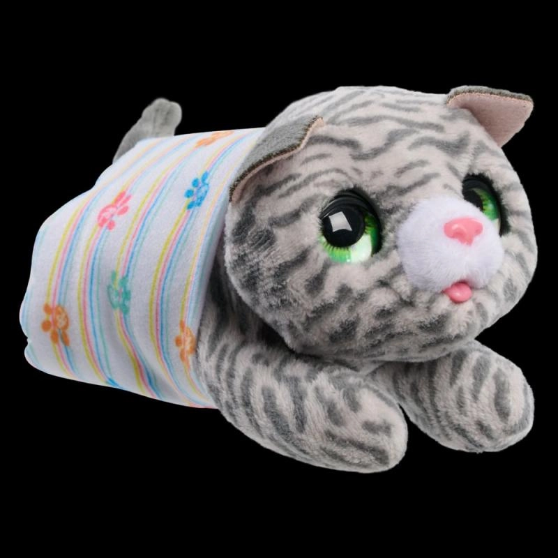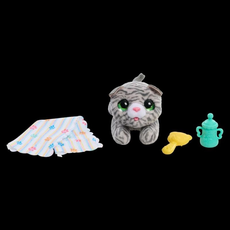FurReal Jaundzimušais Pūkainais Kaķēns ir mīlīga interaktīva rotaļlieta, kuru iemīlēsit! Par to rūpēties ir prieks: barojiet ar pudelīti, nomieriniet ar knupīti vai šūpojiet to rokās.