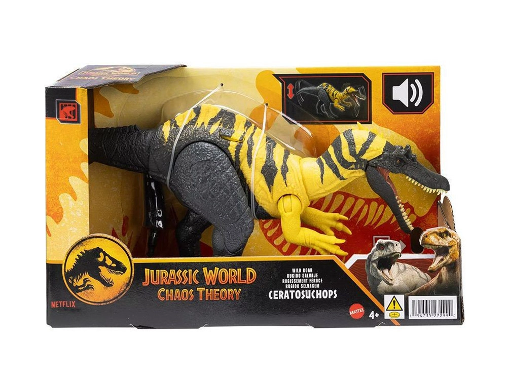 Modelis ir aprīkots ar kustīgām daļām. Vadiet asti, lai aktivizētu draudīgu uzbrukumu: Ceratosuchops sakrata galvu un saklapē žokļus, vienlaikus izdodot niknu rēkšanu, kas noteikti uzdzen zosādu!