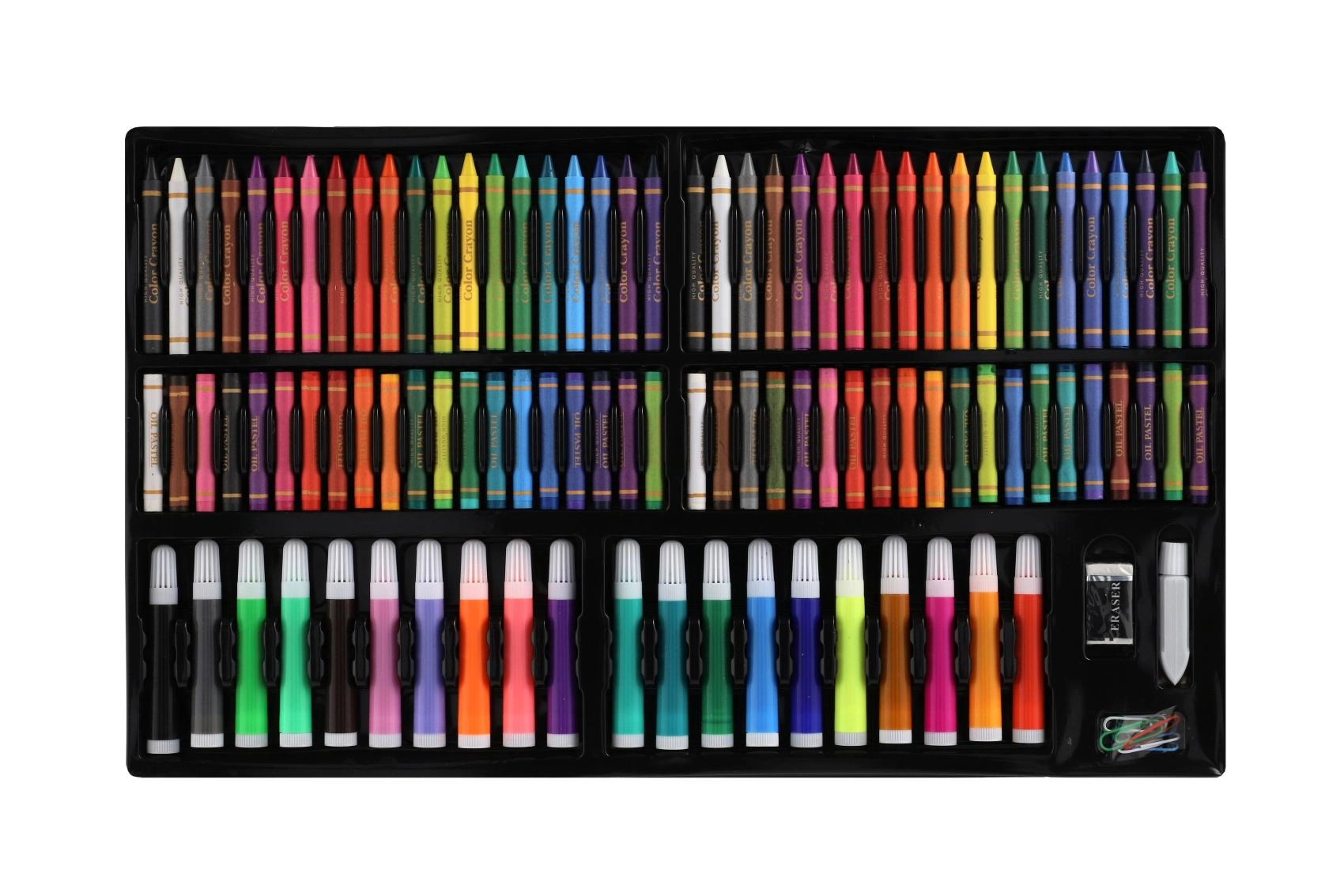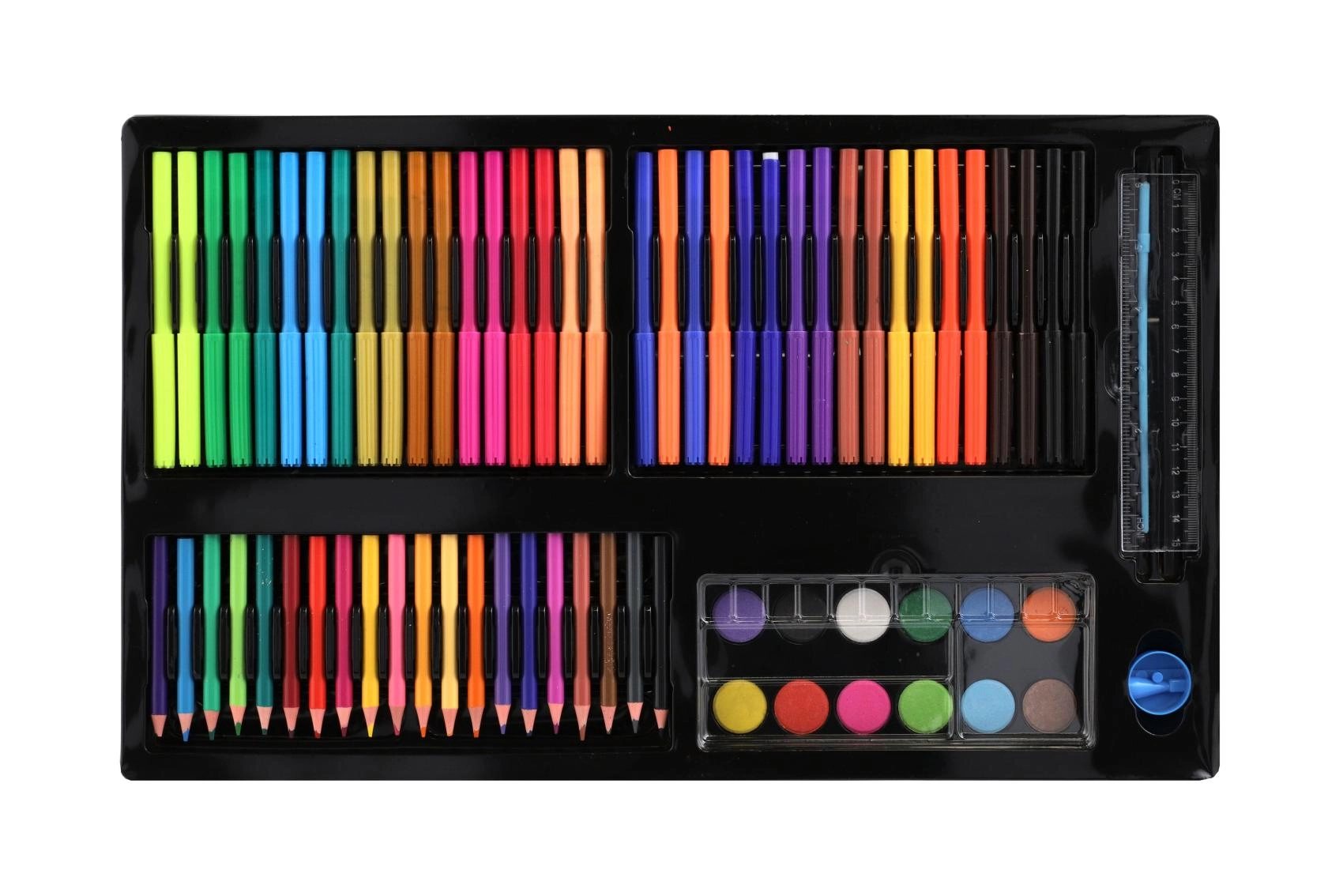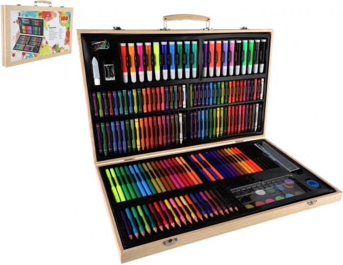 Šis bagātīgais gleznošanas un zīmēšanas komplekts ir ideāli piemērots gan iesācējiem, gan pieredzējušiem entuziastiem. Viss, kas nepieciešams radošai darbībai, ir vienuviet praktiskā koka koferī, kas uztur piederumus pārskatāmi sakārtotus un vienmēr pa rokai.