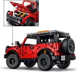 Uzceliet ikonisko FORD BRONCO LEGO Technic izpildījumā un dodieties pretī bezceļu piedzīvojumiem. Modelis piedāvā lielisku detaļu un funkciju līdzsvaru: no atveramām durvīm un darbojošas piekares līdz autentiskam V6 motoram. Stūrēšana notiek ērti, izmantojot aizmugurējo rezerves riteni, tāpēc modelis ir ne tikai glīts, bet arī pilnībā vadāms.