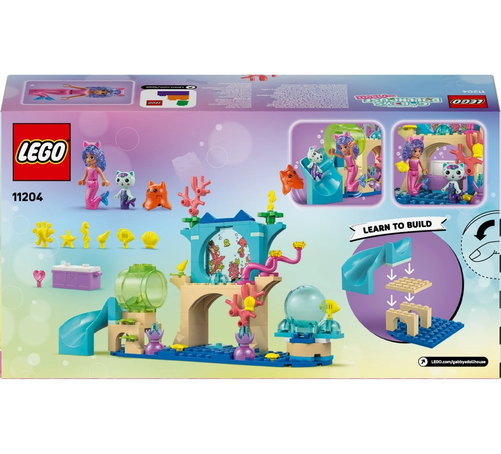 Ieniriet DreamWorks seriāla Gabi kaķu mājiņa pasaulē ar komplektu pašiem mazākajiem cēlājiem. Bērniem patiks minilelle Gabi jūras nāriņas tērpā un figūriņas Nārīnīte un Medūza, ar kurām var veidot pašiem savus stāstus košā zemūdens vidē. Komplekts attīsta radošumu, sīko pirkstu motoriku un pirmās būvēšanas prasmes.
