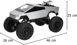 Šis tālvadāmais pikaps piedāvā lielisku izklaidi skarbos apstākļos, pateicoties spējām, piemēram, pārvarēt slīpumu līdz 45° un līdz 25 metru darbības rādiusam ar 2,4 GHz. Modelim ir apgaismojuma efekti, kas nodrošina reālistisku pieredzi, un 7,4 V akumulators sniedz līdz 20 minūtēm braukšanas.