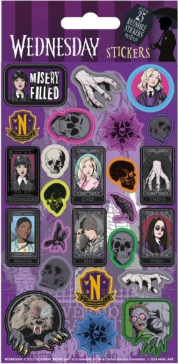 Katrā uzlīmju lapā ir 25 unikāli motīvi, kas iedvesmoti no populārā seriāla Wednesday. Neatkarīgi no tā, vai esi seriāla fans vai meklē oriģinālu veidu, kā izdekorēt klades, klēpjdatoru vai citas virsmas, šīs uzlīmes ir īstā izvēle. Pateicoties atkārtotai lietošanai, vari mainīt to novietojumu atbilstoši noskaņojumam. To izmērs nodrošina ērtu lietošanu un lielisku izskatu uz jebkuras virsmas.