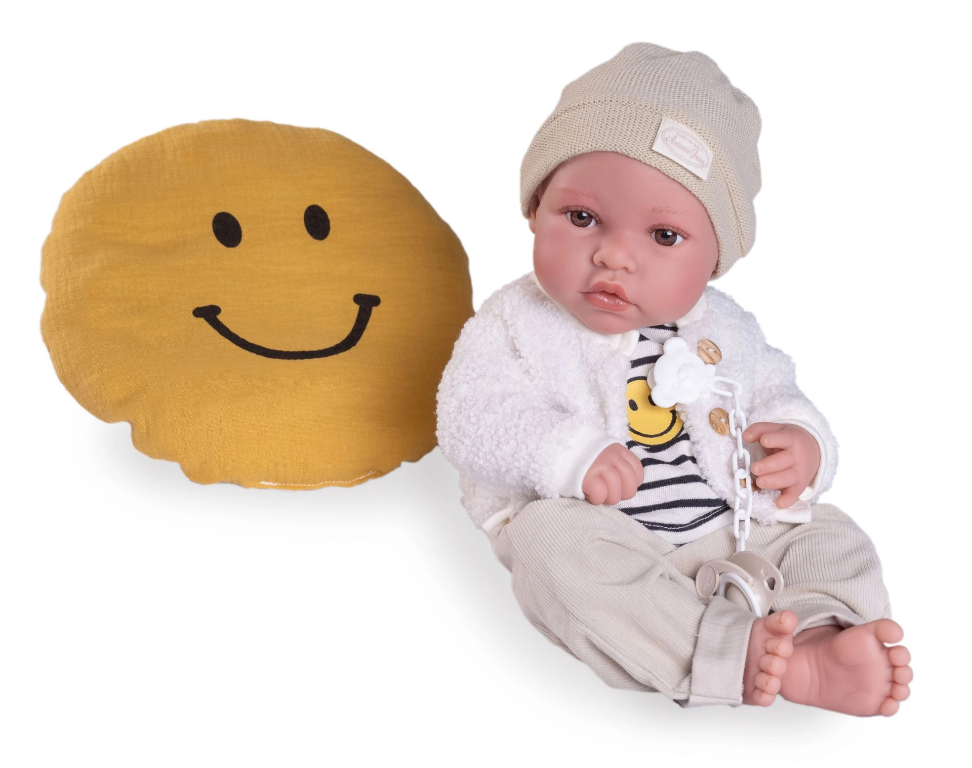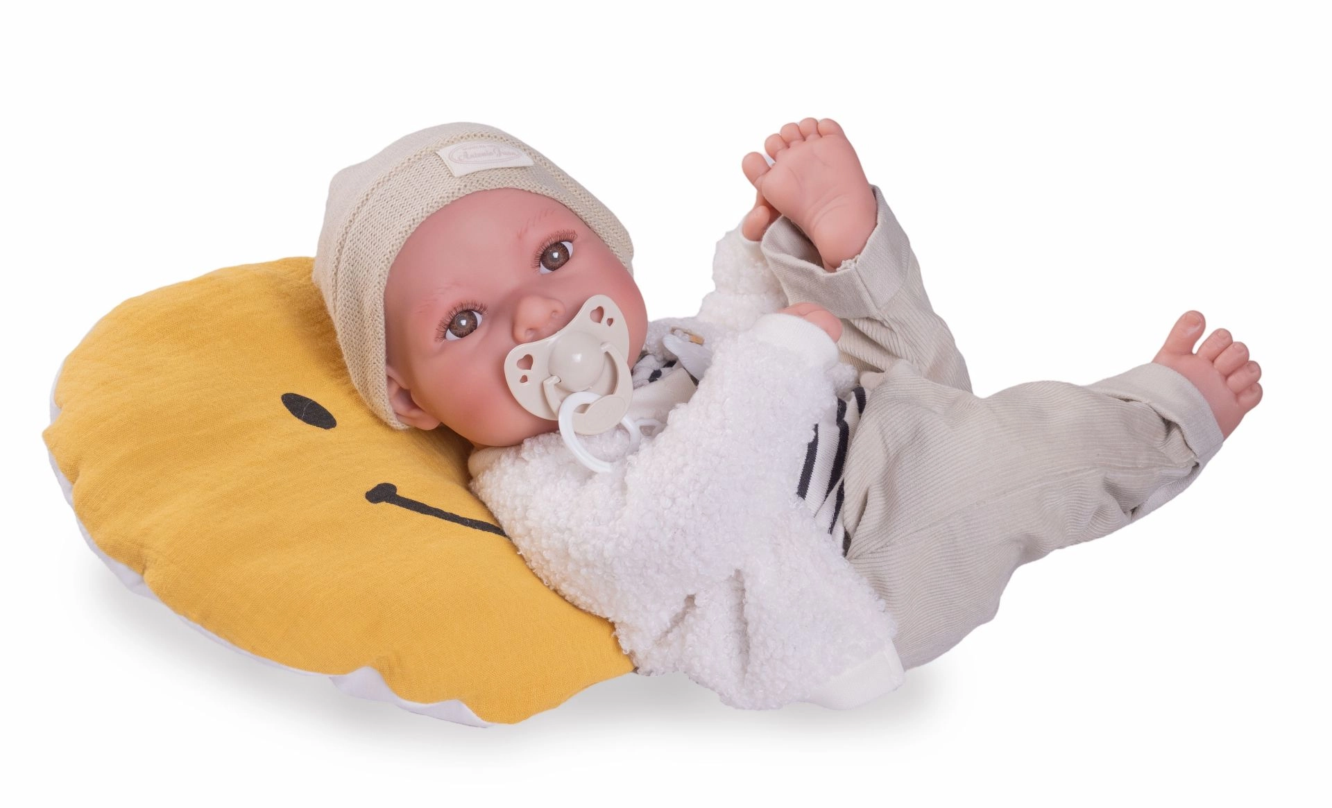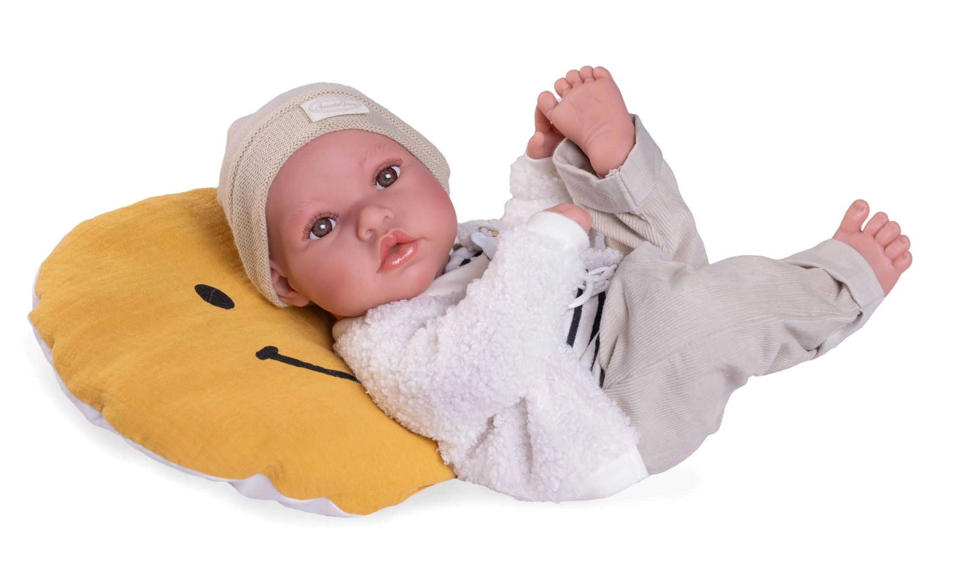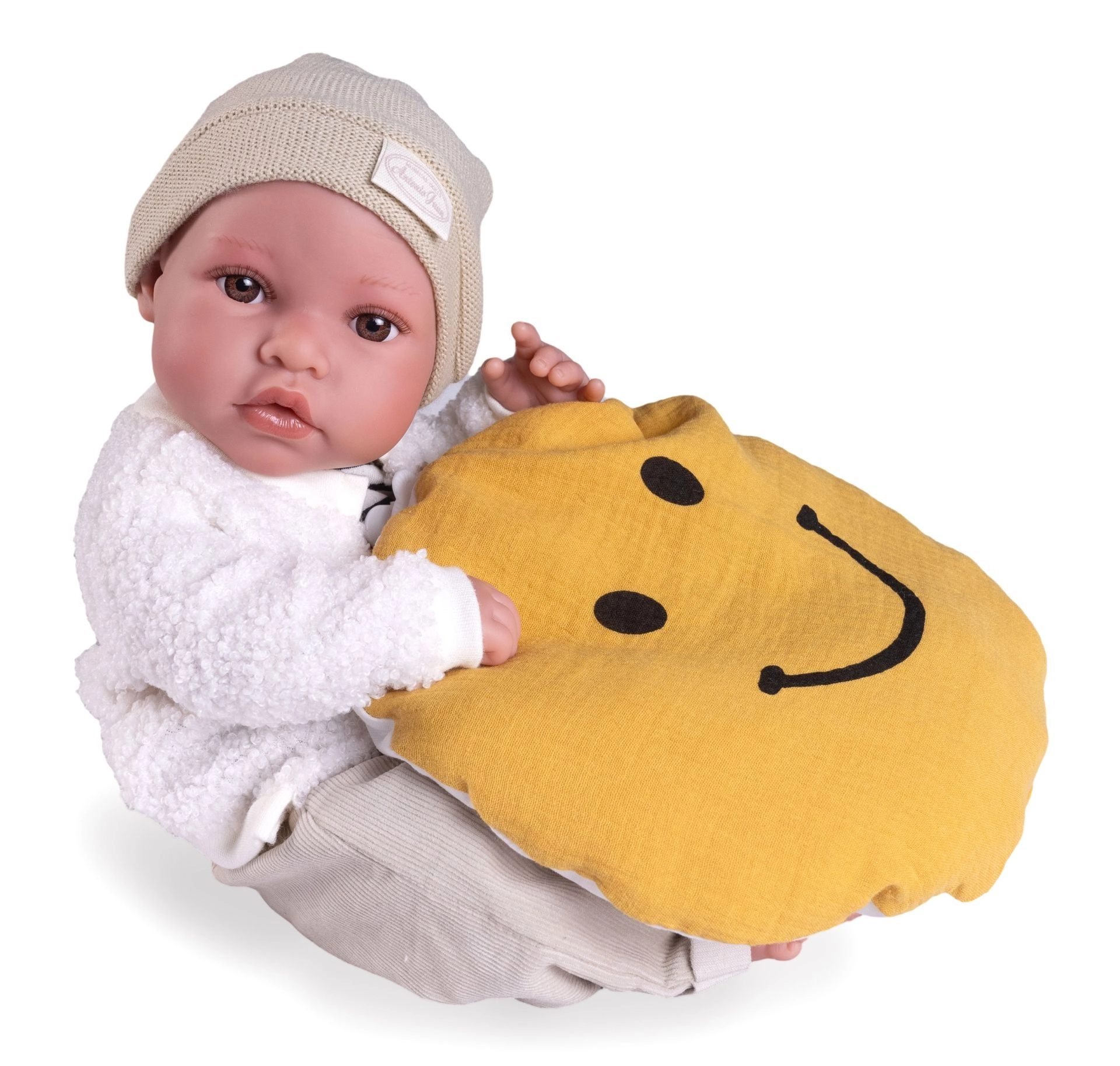 Šī spāņu lelle ir izgatavota no speciāla mīkstināta vinila, kas ir patīkams pieskārienam un piešķir rotaļlietai reālistisku izskatu, tostarp vairākus ielociņu veidus un detaļas, ieskaitot dzimuma pazīmes. Pateicoties tam, bērni var izjust īpašus mirkļus, rūpējoties par savu “jaundzimušo”.