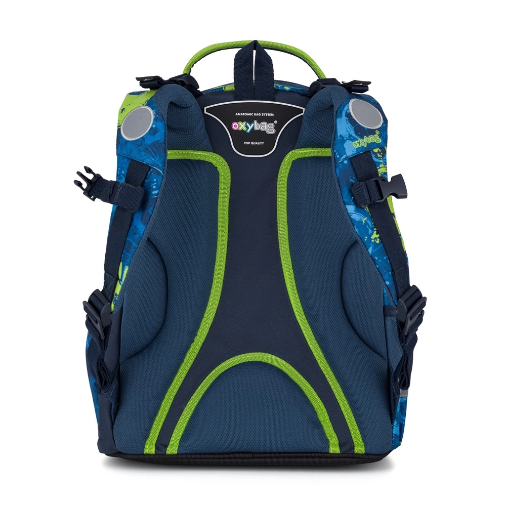 Skolas mugursoma Oxy Go piesaista uzmanību ar mūsdienīgu dizainu un pārdomātām detaļām. Tā ir aprīkota ar vairākām ietilpīgām kabatām, tostarp lielu galveno nodalījumu, mazākām sānu kabatām un priekšējo kabatu ar rāvējslēdzēju. Ergonomiskais dizains ietver ērtas, polsterētas siksnas un elpojošu muguras daļu, kas nodrošina komfortu visas dienas garumā.
