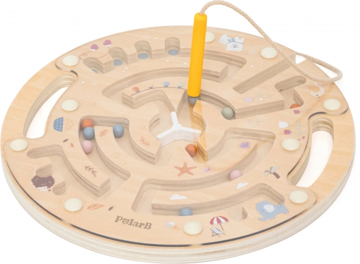 VIGA zīmola magnētiskais labirints ir izgatavots no kvalitatīva koka un rotāts ar mīlīgām četru gadalaiku ilustrācijām. Tas sniedz ne tikai daudz izklaides, bet arī veicina roku prasmju un loģiskās domāšanas attīstību. Pateicoties magnētiskajai pildspalvai, bērns var pārvietot krāsainās bumbiņas pa labirintu un trenēt roku-acu koordināciju.