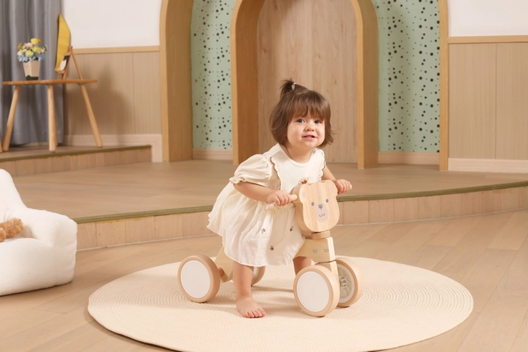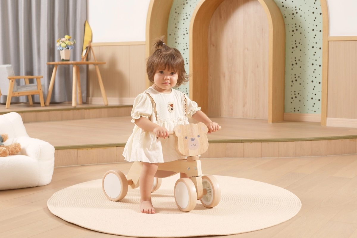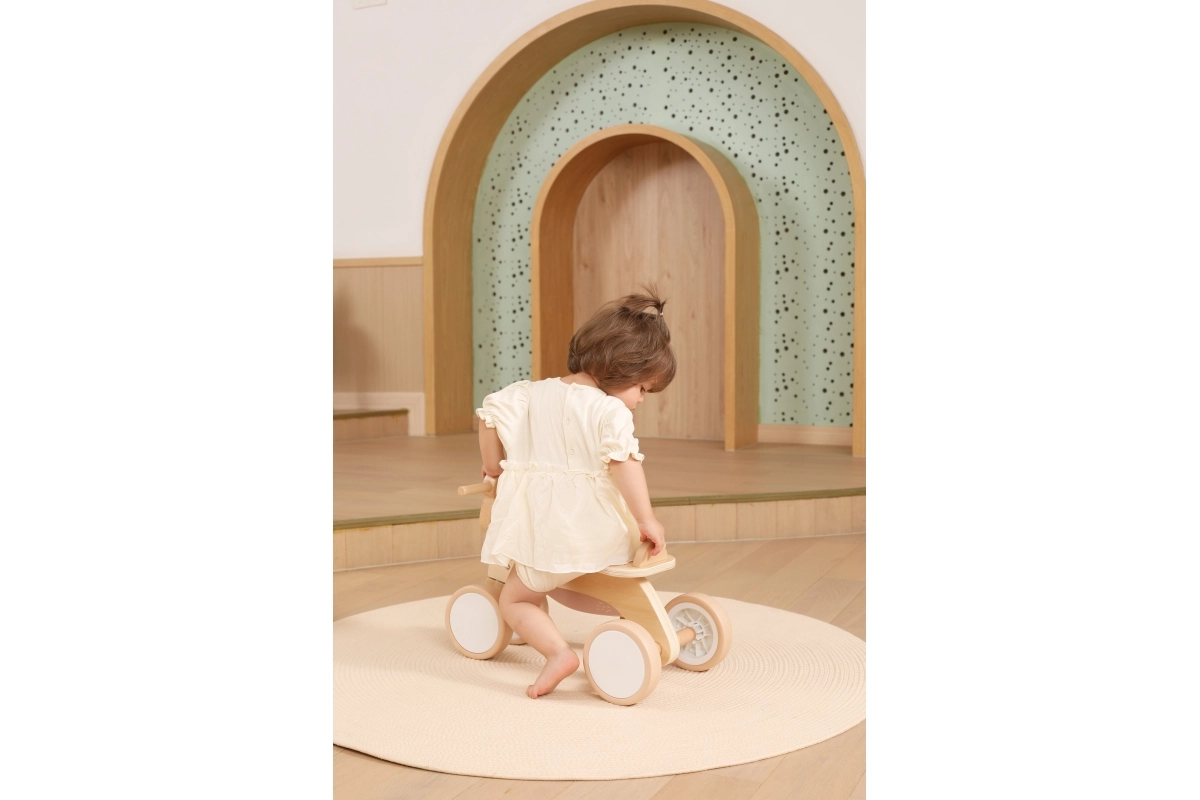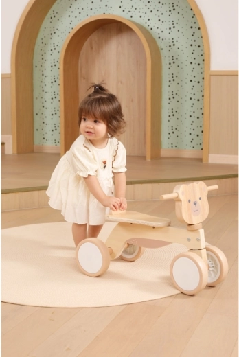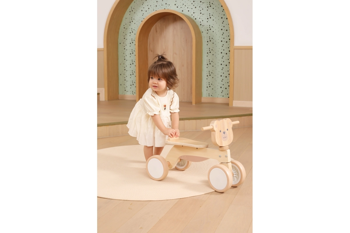 Mīlīgs koka skrejriteņis ar lāča priekšpusi no zīmola VIGA sērijas PolarB atbalstīs bērna pirmos braucienus jau no 12 mēnešu vecuma. Stabilā četrratu bāze, droša stūres leņķa bloķēšana pret straujiem pagriezieniem un klusie EVA riteņi, kas saudzē grīdu, nodrošina ērtu un drošu braukšanu gan mājās, gan ārā. Dabīgais koka izskats un draudzīgais lāča dizains bērniem iepatiksies uzreiz.