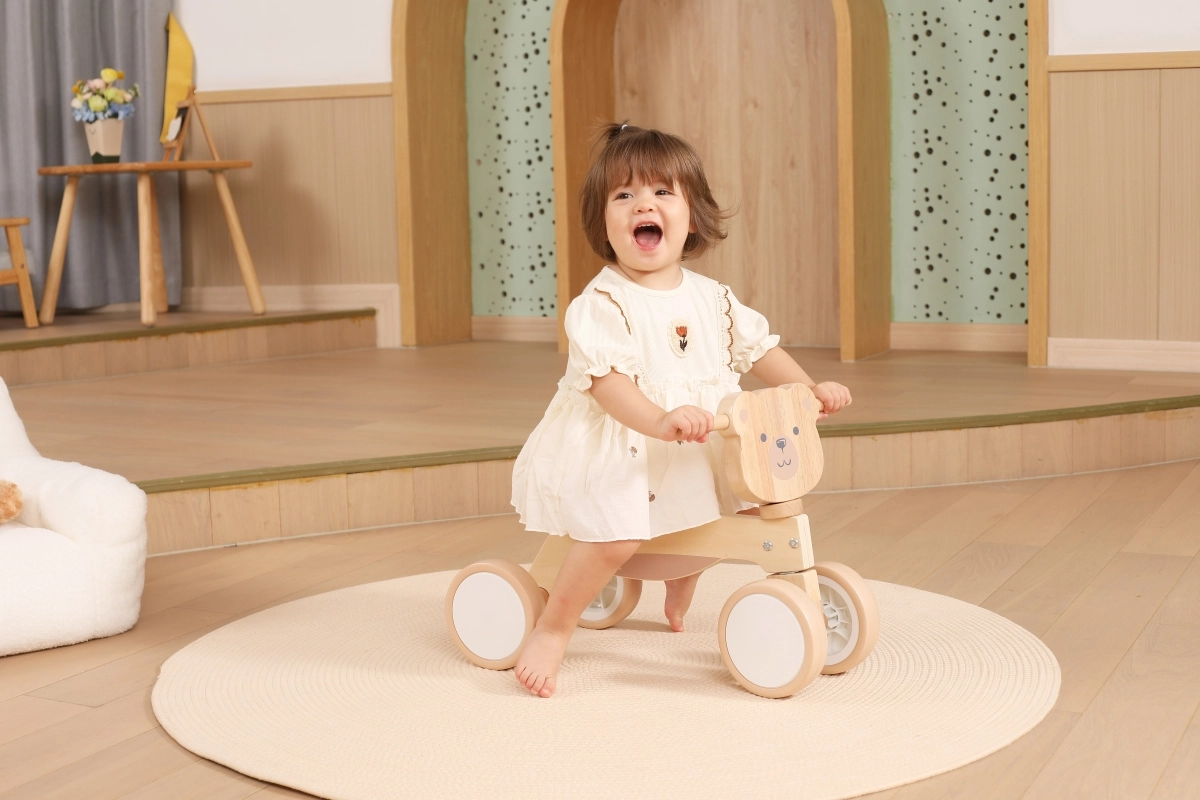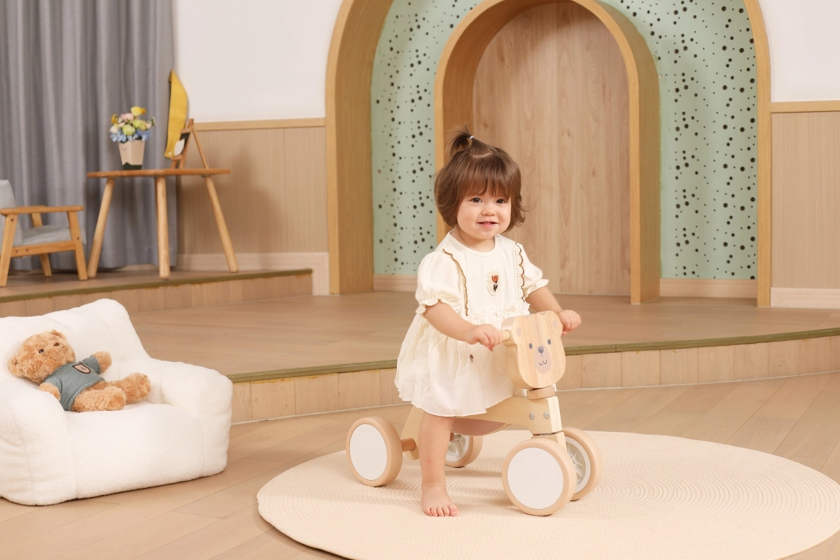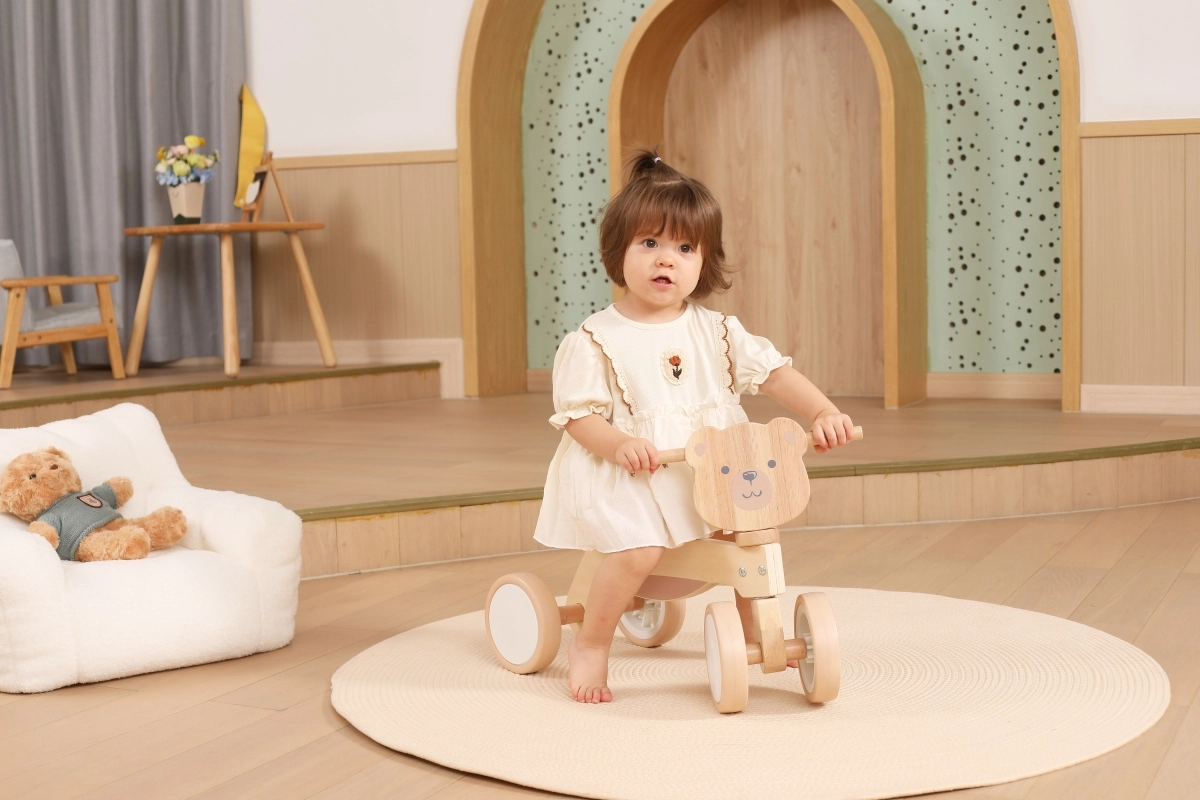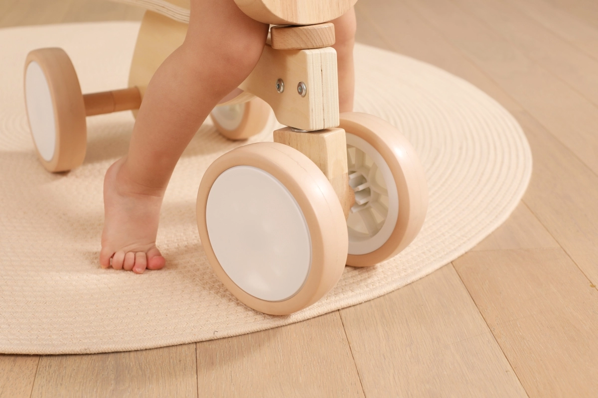 Mīlīgs koka skrejriteņis ar lāča priekšpusi no zīmola VIGA sērijas PolarB atbalstīs bērna pirmos braucienus jau no 12 mēnešu vecuma. Stabilā četrratu bāze, droša stūres leņķa bloķēšana pret straujiem pagriezieniem un klusie EVA riteņi, kas saudzē grīdu, nodrošina ērtu un drošu braukšanu gan mājās, gan ārā. Dabīgais koka izskats un draudzīgais lāča dizains bērniem iepatiksies uzreiz.
