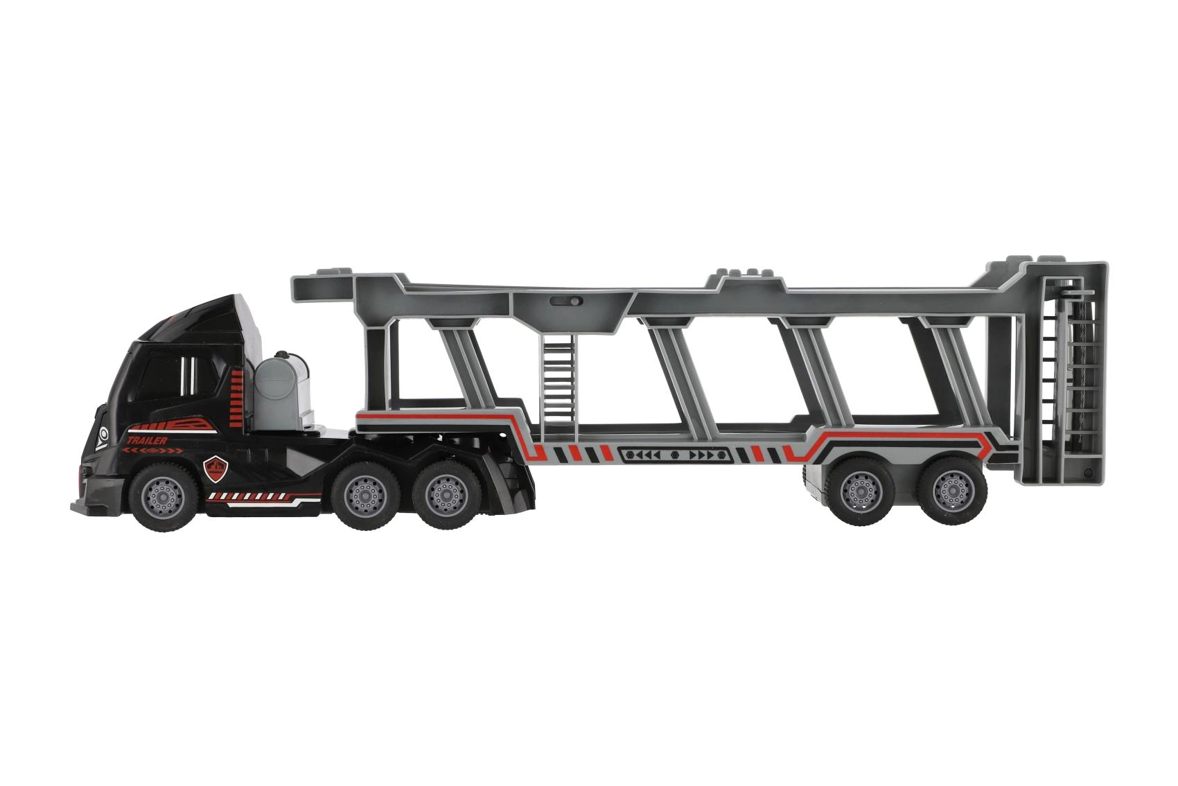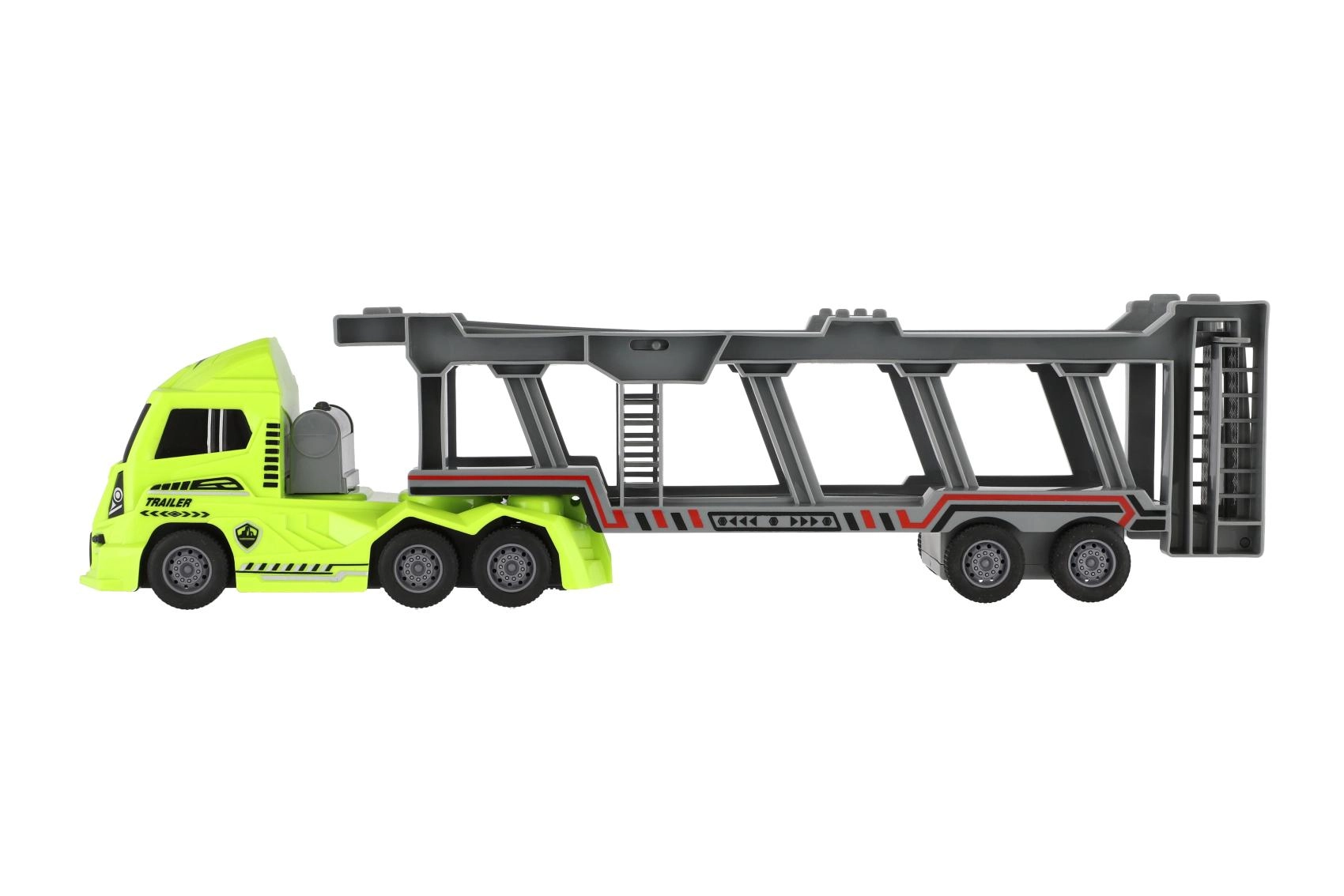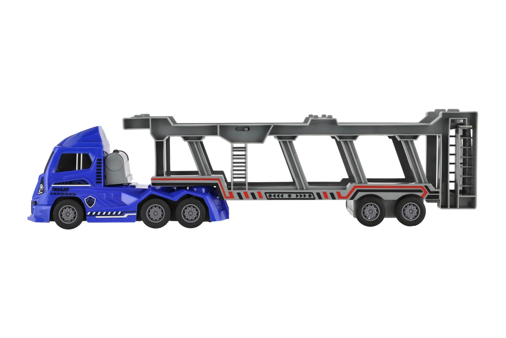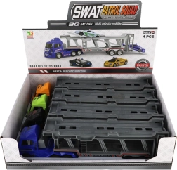 Dodies policijas uzdevumā ar šo lielisko kravas vedēju. Rotaļlietai ir divstāvu atlokāma piekabe, kas nodrošina lielisku spēļojamību un pietiekami daudz vietas jūsu transportlīdzekļiem.