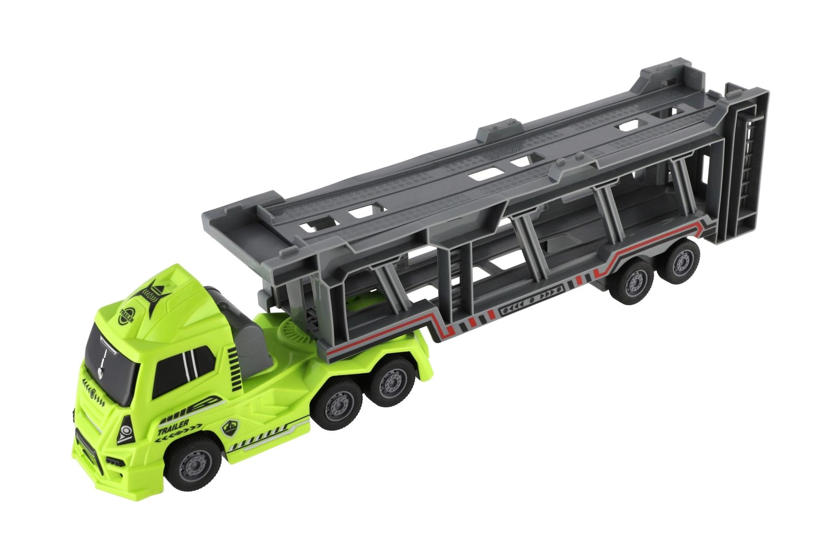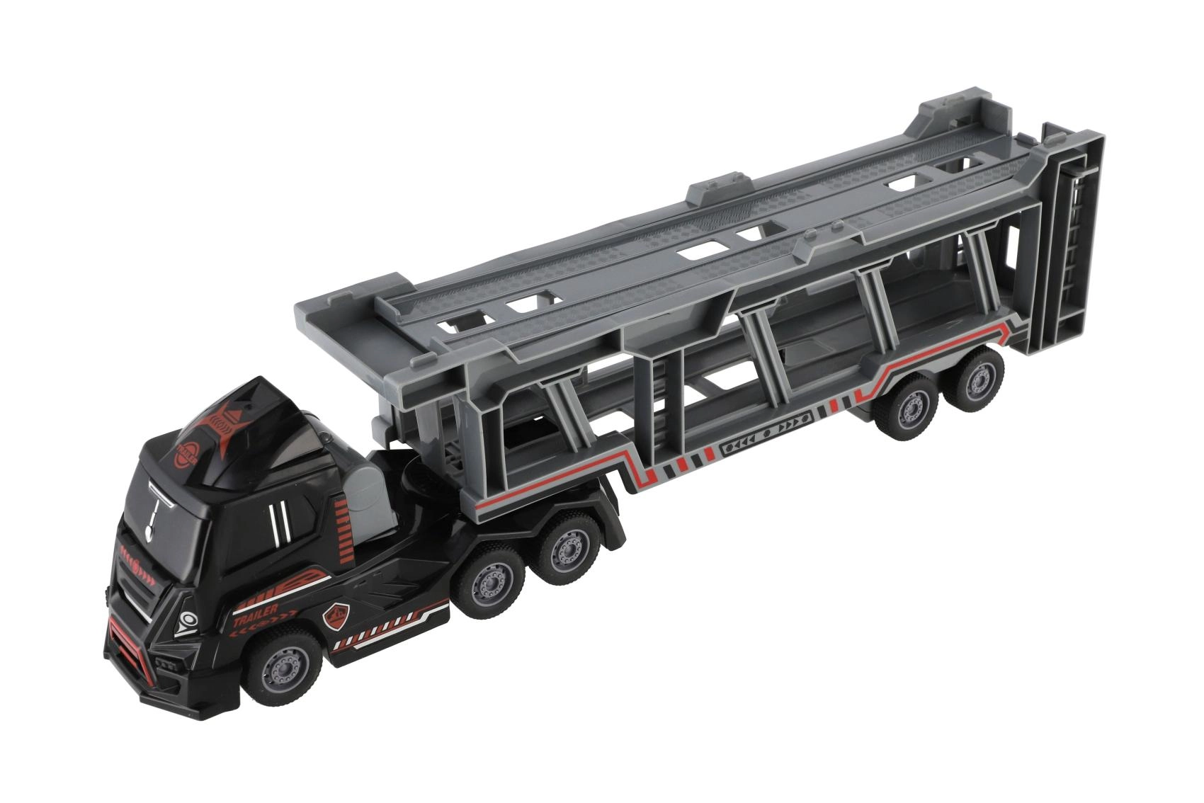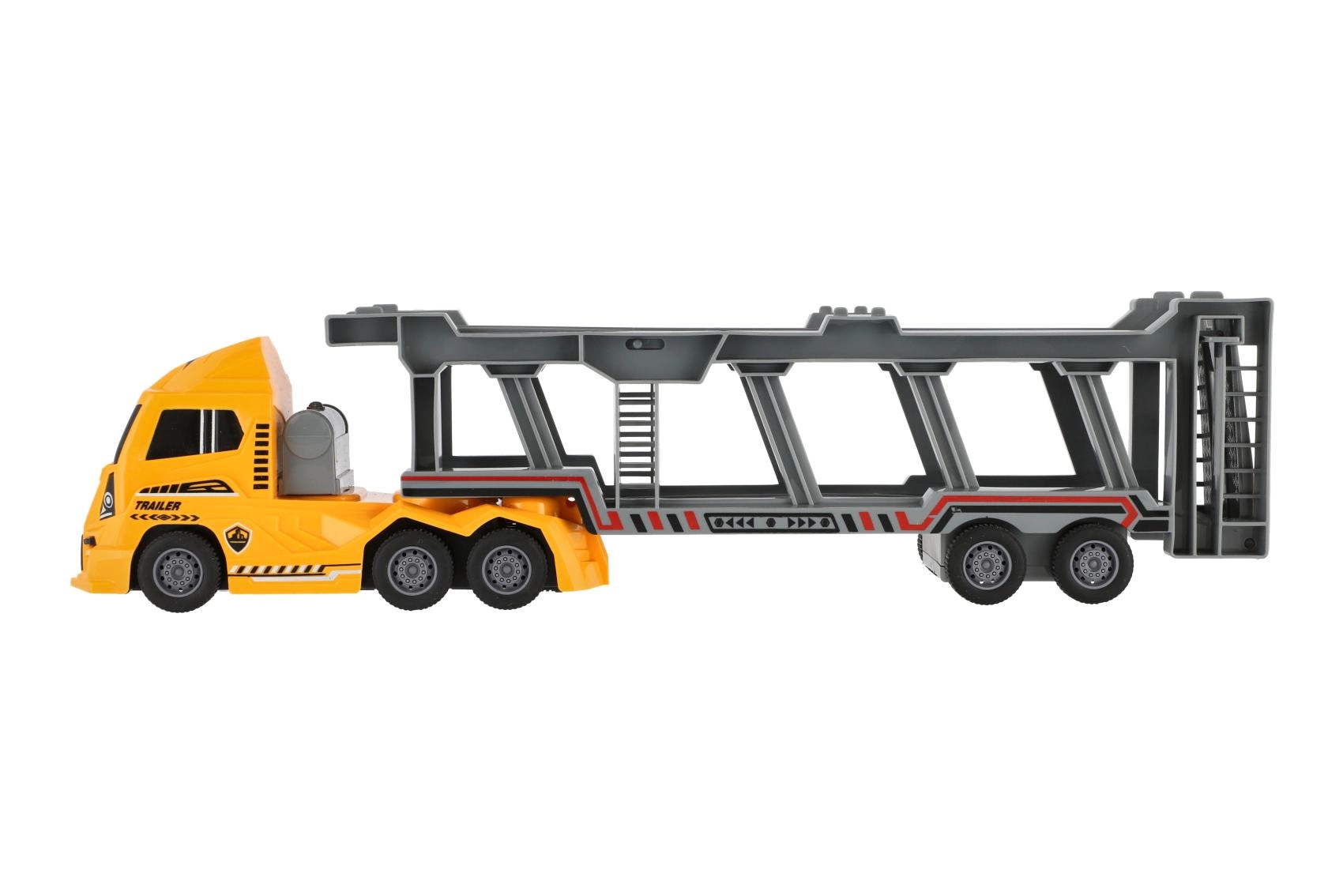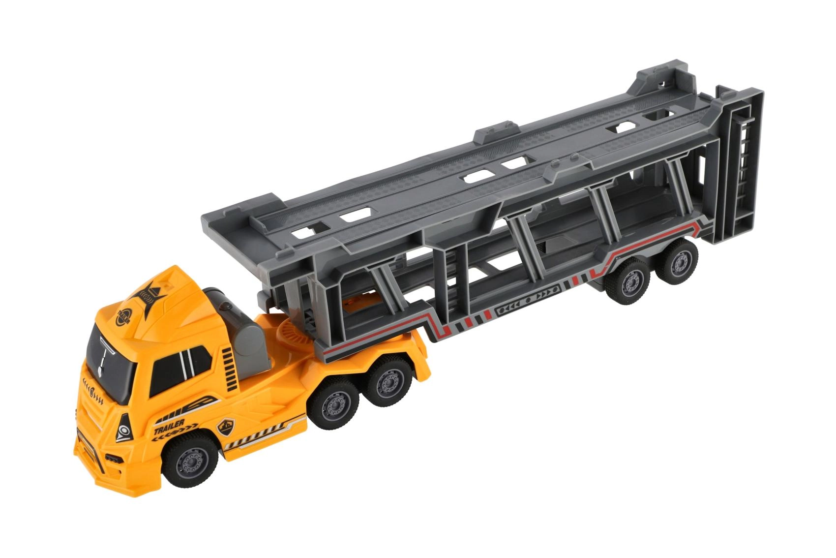Dodies policijas uzdevumā ar šo lielisko kravas vedēju. Rotaļlietai ir divstāvu atlokāma piekabe, kas nodrošina lielisku spēļojamību un pietiekami daudz vietas jūsu transportlīdzekļiem.