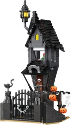 Tematiskais HALLOWEEN spoku mājas komplekts apvieno aizraujošu būvēšanu ar tumšu, valdzinošu estētiku. Tajā atradīsiet augstu tornīti, žogu ar vārtiem, ķirbjus, sikspārņus un laternu uz staba – tas viss kontrastējošās, tumšās krāsās, lai modelis izceltos gan uz plaukta, gan svētku dekorācijās.