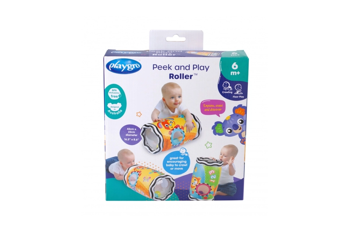 Piepūšamais grabuļojošais Playgro veltnis motivē mazuli kustēties un attīsta prasmes. Ripojot tas izdod melodisku grabēšanu, tam ir kontrastaini raksti, skatlogu lodziņi un viegls, kompakts dizains, ideāls gan mājās, gan ceļā.