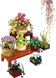 Šis izstrādātais konstruktors piedāvā bagātīgu augu kolekciju – rozes, cymbidium, mini orhidejas, fuksijas un sīpolaugus – katrs ar atšķirīgu struktūru, krāsu un poda formu. Gatavā kompozīcija ar izmēriem 44 × 42 × 24,5 cm izskatās dabiski un stilīgi, un plauktiņš koka dekorā veido harmonisku aranžējumu, kas izceļas gan modernā, gan klasiskā interjerā.