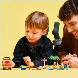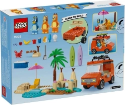 Pateicoties lielajam sākuma elementam un vienkāršām instrukcijām, būvēšana ir ātra un jautra arī mazākiem bērniem. Iekļauti mīlīgi piederumi – krabis, saldējums, saulesbrilles un sauļošanās krēms –, lai spēles pludmalē būtu vēl reālākas. Ideāla dāvana seriāla BLUEY faniem un visiem mazajiem auto un vasaras piedzīvojumu mīļotājiem.
