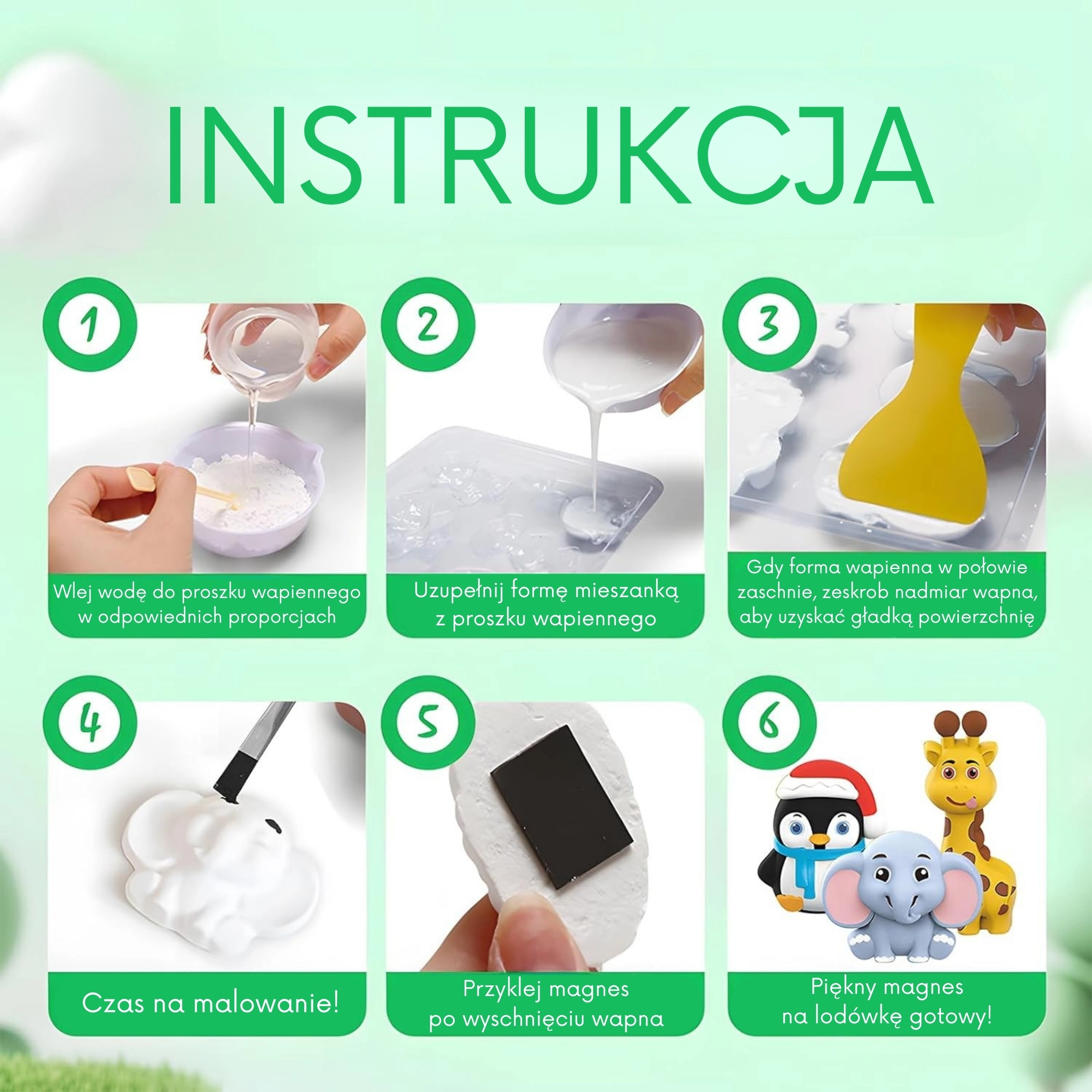 Šis gudrais 2 vienā komplekts apvieno atliešanu un figūriņu krāsošanu vienā radošā nodarbībā. Bērni sagatavos ģipsi, ielies motīvus formā un pēc nožūšanas izkrāsos tos košās krāsās. Rezultātā top unikālas dekorācijas istabai vai oriģinālas dāvanas tuviniekiem.