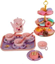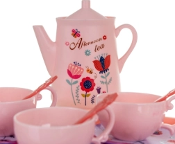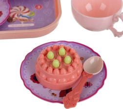 Burvīgs tējas komplekts ērtā koferītī iepriecinās katru mazo saimnieci. Komplektā ir tējkanna, tasītes, šķīvīši, paplāte, trīsstāvu statīvs un daudz saldumu “pasniegšanai”. Pateicoties izturīgajai plastmasai, komplekts ir izturīgs pret plaisām un skrāpējumiem, veicina radošu spēli un iztēles attīstību un viegli tīrāms ikdienas izklaidei.