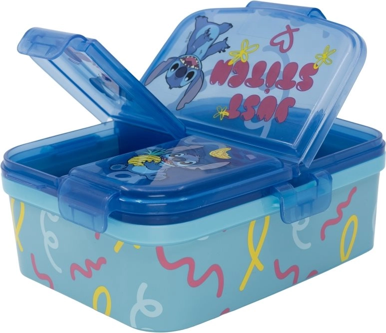 Stilīga un praktiska pusdienu kārba ar STITCH motīvu piedāvā 1 lielu un 2 mazus nodalījumus ēdiena pārskatāmai atdalīšanai. Izgatavota no izturīga materiāla un nesatur BPA – ideāli skolai, rotaļlaukumam un izbraucieniem.